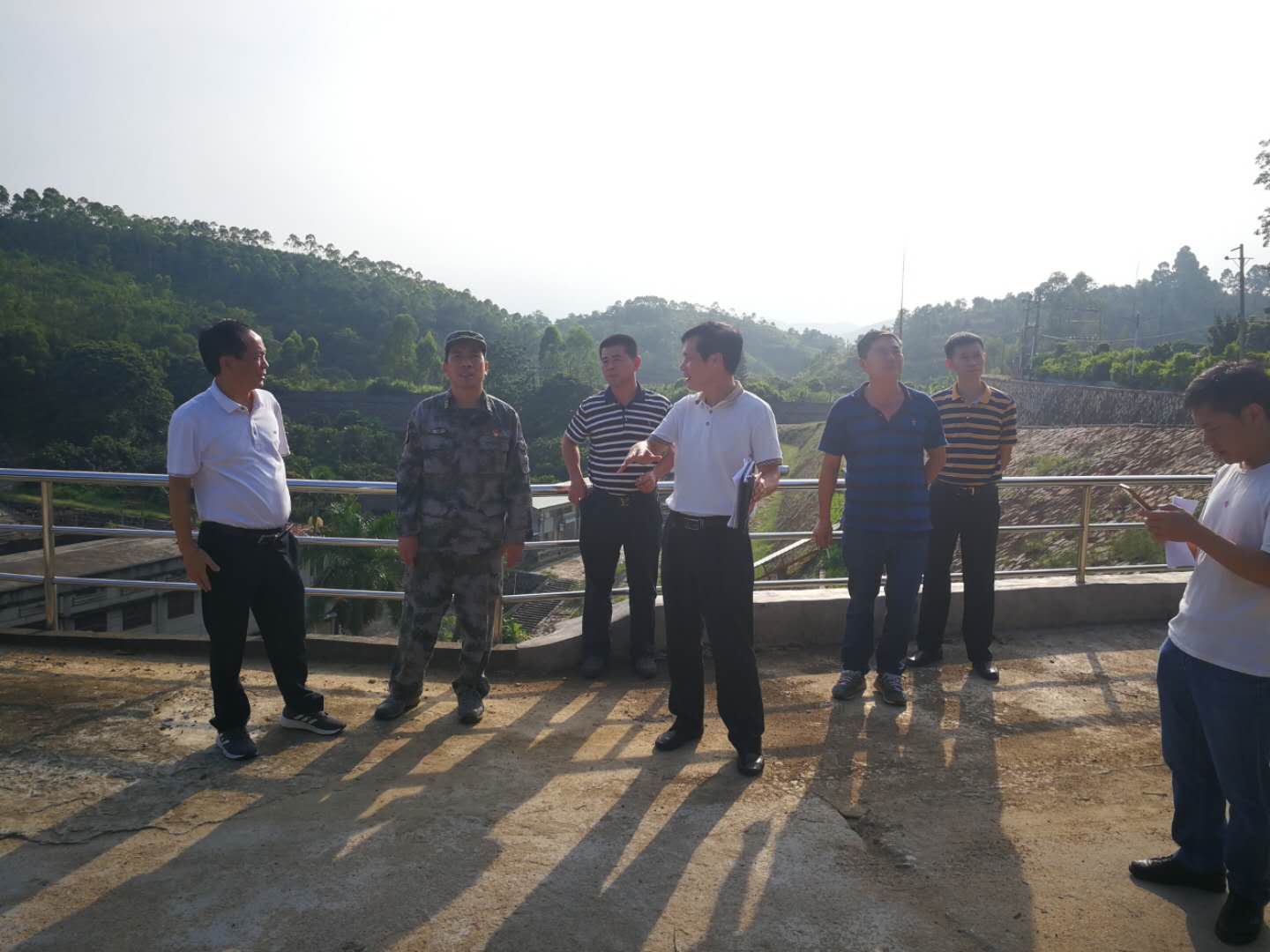 2020年8月20日,惠来县县委常委郑超群和县水利局局长卢祖传等一行到船桥水库管理处检查指导工作,对船桥水库管理处现状及发电厂安全生产情况进行视察。