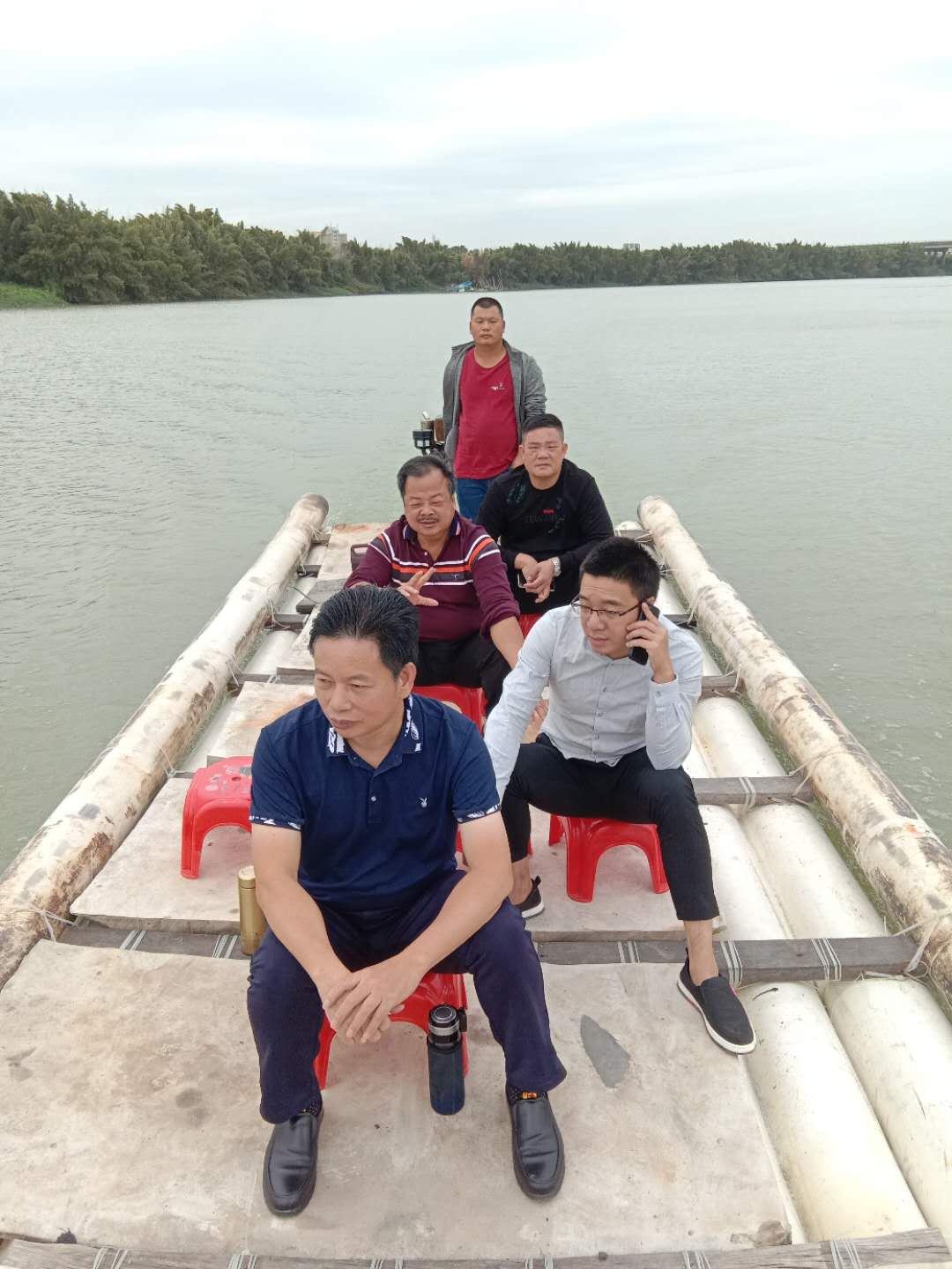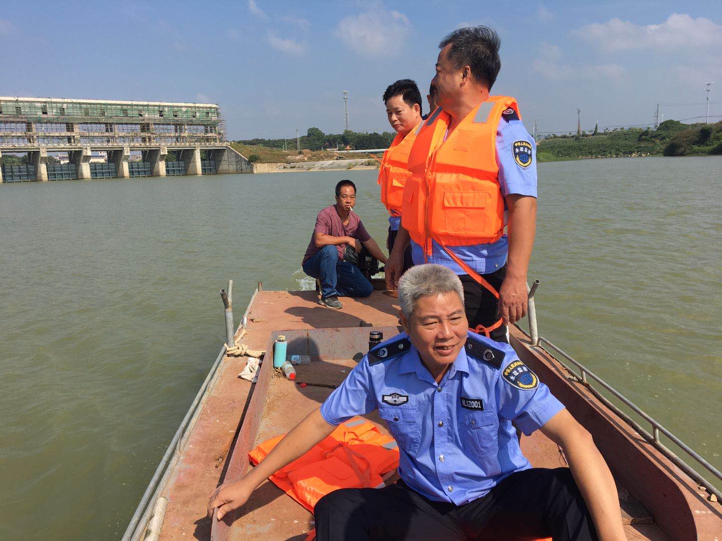 惠来县水利局水政执法人员利用船只,对龙江河隆江镇河段进行水上巡查。