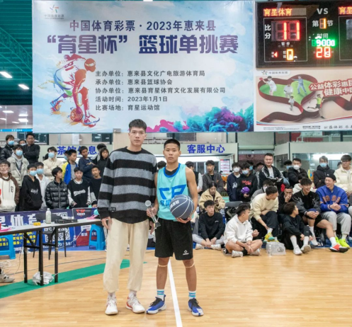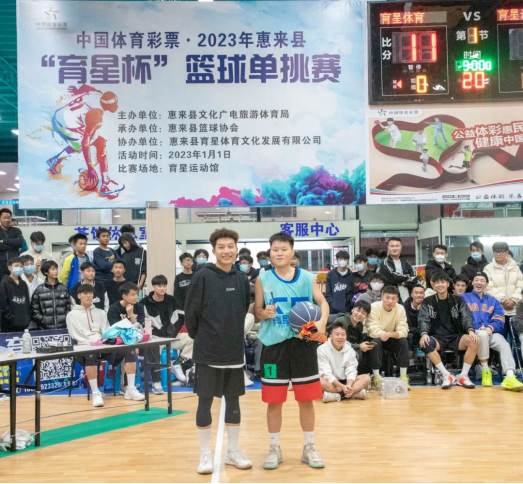 庆元旦,迎新年!为进一步增强惠来县青少年体质,为篮球爱好者提供相互了解和沟通的机会,促进我县篮球文化的发展,由惠来县文化广电旅游体育局主办,县篮球协会承办的“中国体育彩票•2023年惠来县篮球单挑赛”于1月1日下午一点在育星运动馆举行,本次篮球单挑赛分成4个组别,报名参赛人数高达180人。