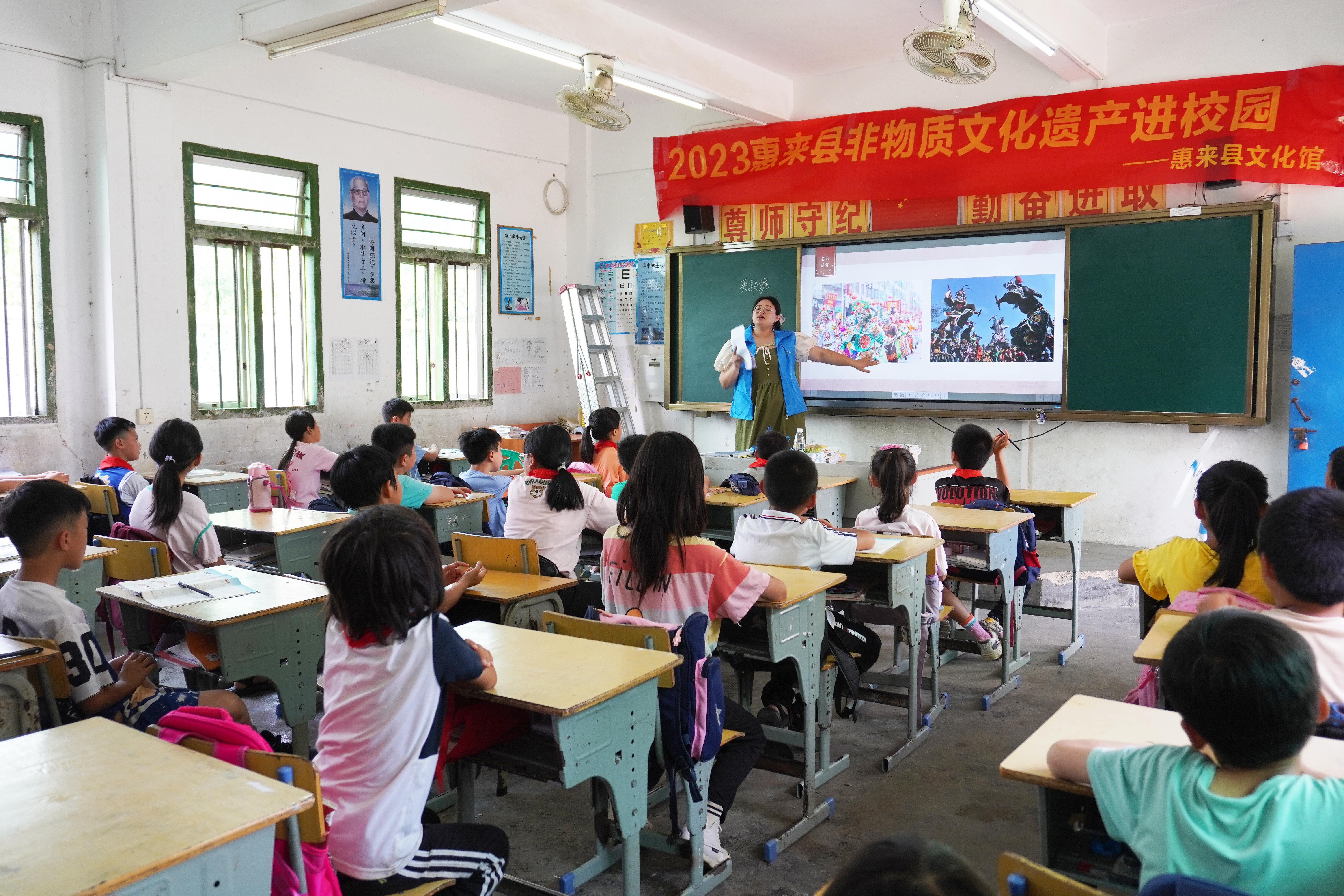 响应全省高质量发展大会精神,加快推进非遗传承保护工作。截至目前,惠来县共有非遗项目50项,其中省级13项、市级28项、县级9项,形成以省市县逐级传承保护体系。惠来县在非遗宣传保护中,坚持以非物质文化遗产助力乡村振兴的发展策略,加强非物质文化遗产建设,推动非遗治理体系。组织打火醮、竹溪楼日历等7个省级非遗传承人完成省级评估,隆江猪脚、双发肉籽等15个县级项目获批市级项目;潮州木雕、塘田卷章先后参加2023广东文旅推介大会、2023粤港澳大湾区工艺美术博览会暨第十三届深圳工艺美术博览会、揭阳市五一非遗展演。同时,在今年“文化和自然遗产日”当天,以“保护发展非遗 助力乡村振兴”为主题,开展非遗项目图片实物展览、省市级项目葵潭鹤舞、潮州音乐、英歌舞等展演、非遗文创展示体验等活动,活动惠及群众千余人。