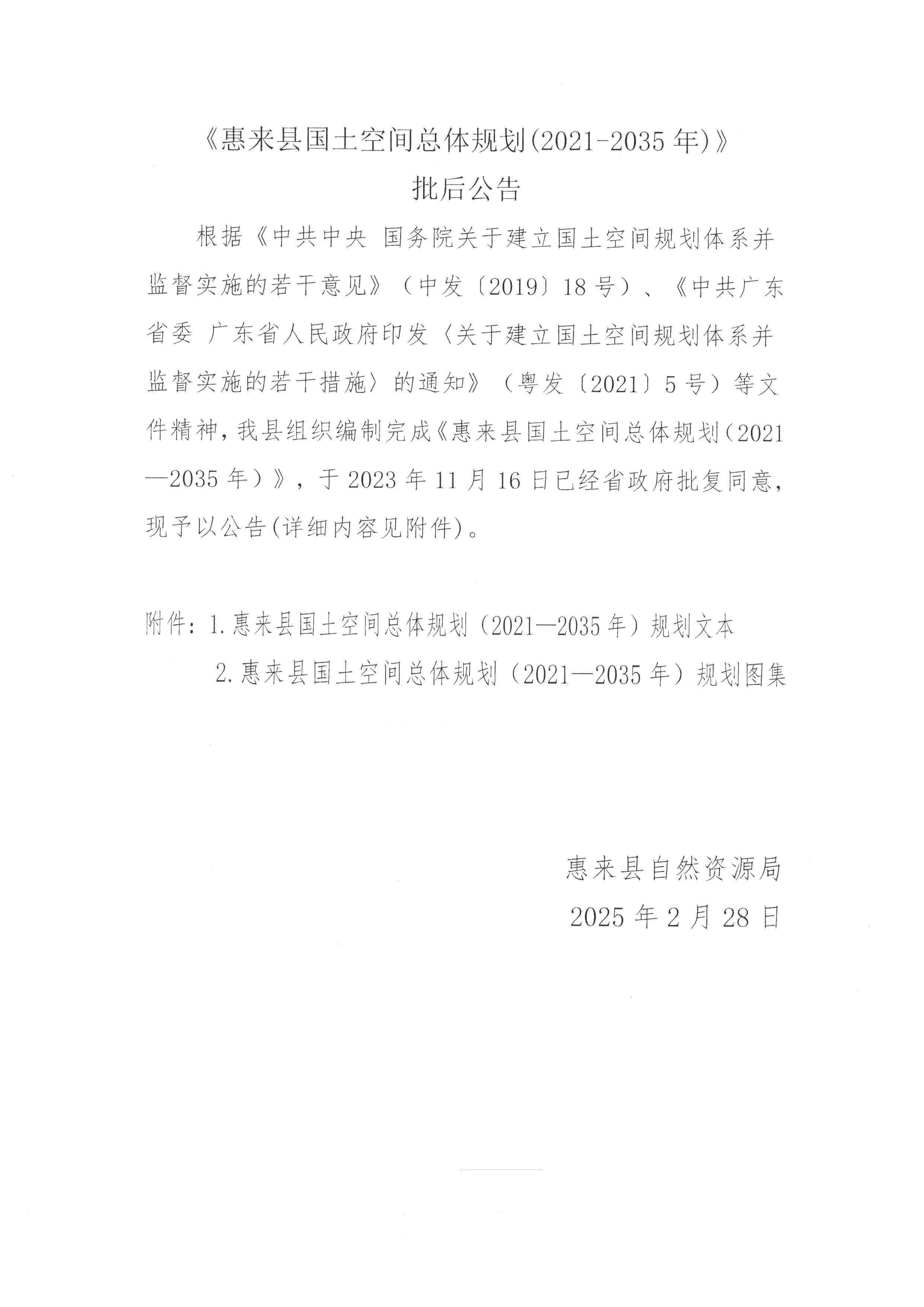 《惠来县国土空间总体规划(2021-2035年)》批后公告