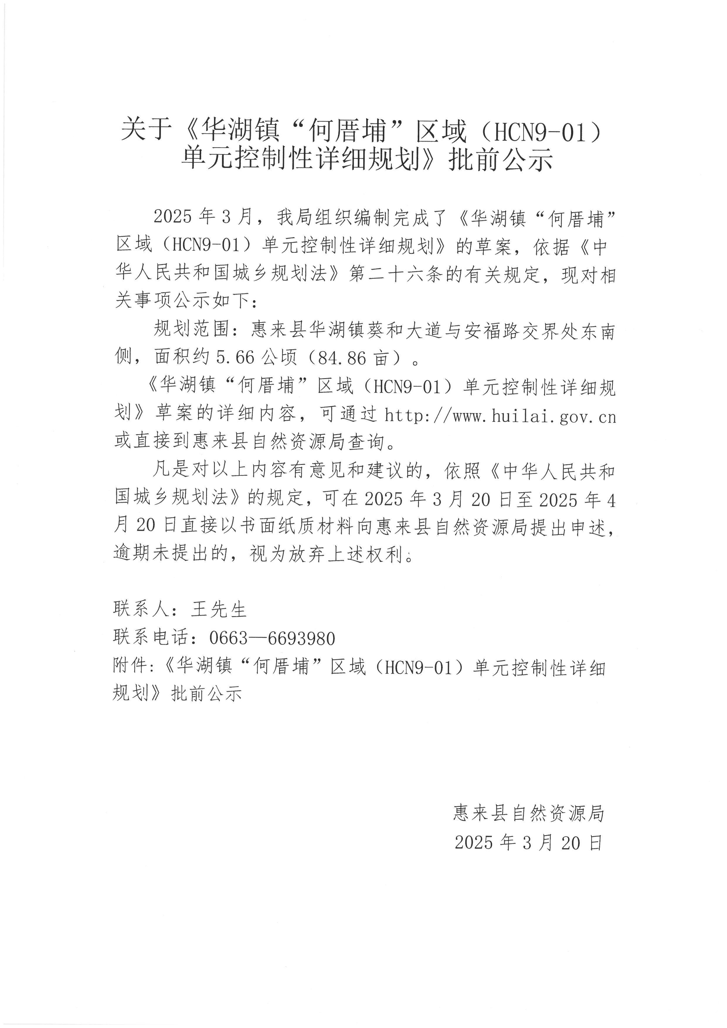 关于《华湖镇“何厝埔”区域(HCN9-01)单元控制性详细规划》批前公示
