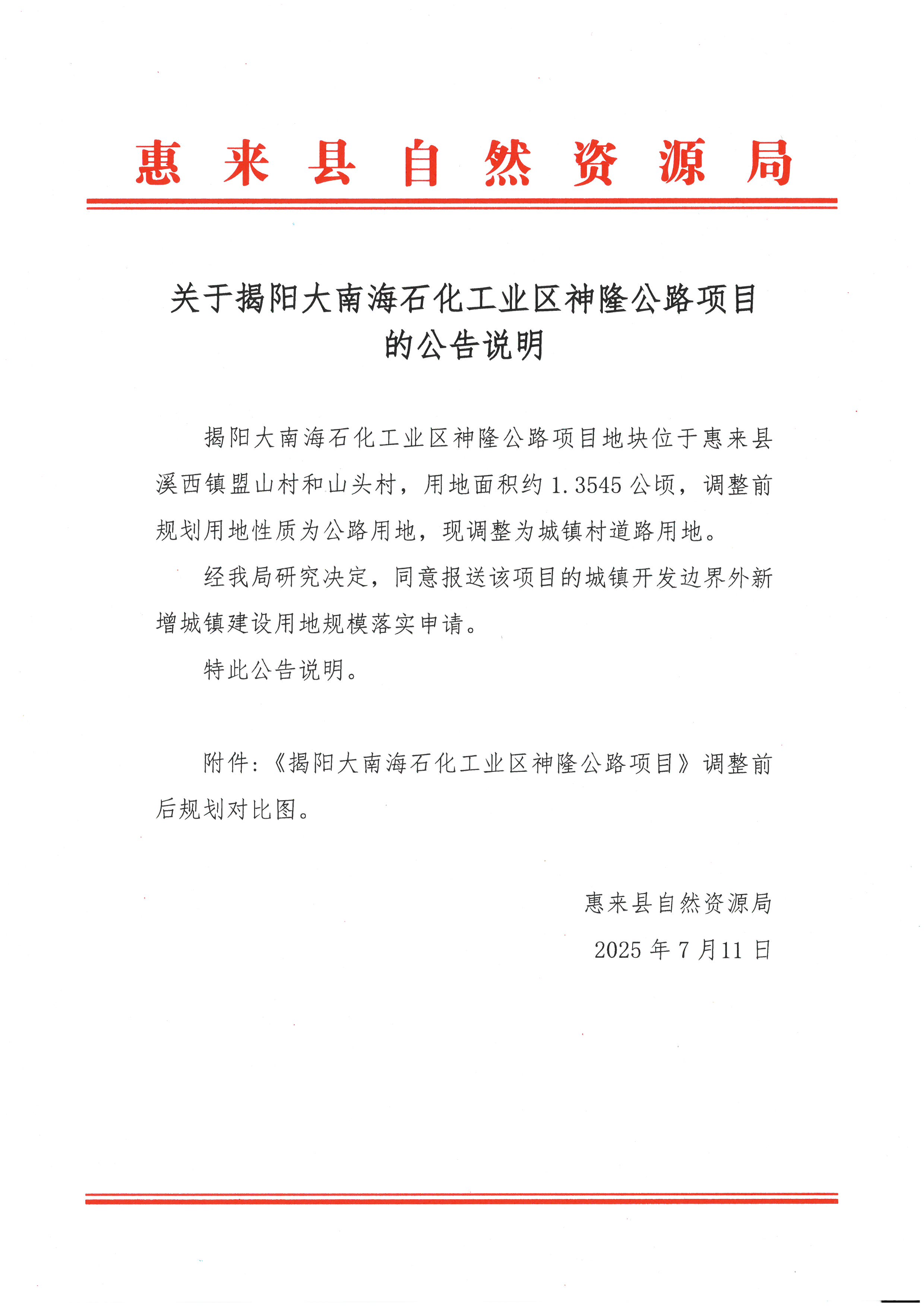 关于揭阳大南海石化工业区神隆公路项目的公告说明