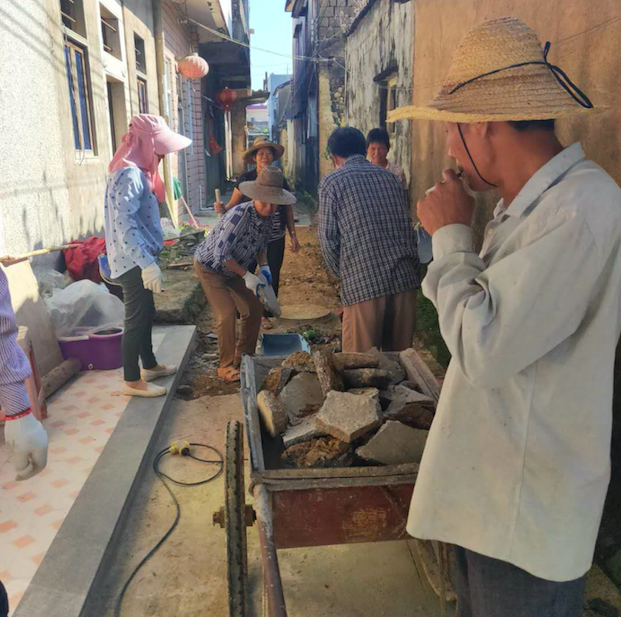 曲江区樟市镇西约村在“小额工程建设模式”的带动下,探索出“党建引领、群众参与、依规实施、事后奖补”的建设模式。当地乡贤积极捐款130多万元,村民投工投劳,一起下河捞石头、上山砍竹子、刷墙面、铺巷道,实现村民共建共治共享。