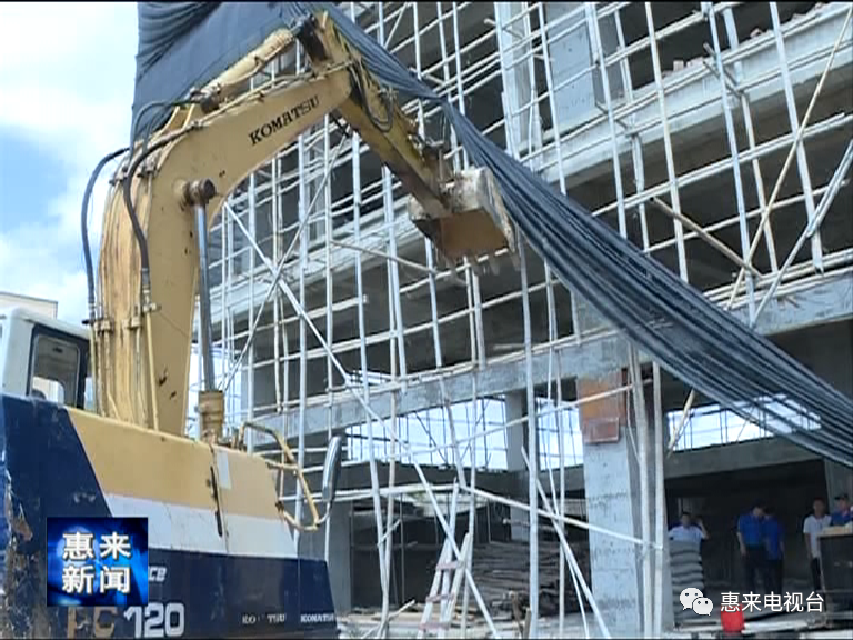 当天行动,葵潭镇委镇政府联合县住建局执法大队一行30多人,出动钩机一部,对该违规建筑进行了强制控停。对其外围脚手架进行了强制拆除,对该违建工地使用的柴油发电机进行查扣并责令其自行拆除运送建筑材料的升降架,对违建业主进行批评教育,同时责令其限期进行整改。