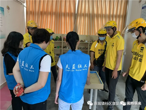 活动上,美团骑手在社工的指引下,参观了惠城镇社区康复综合服务中心,听取中心所开展的禁毒培训课,了解常见的毒品种类、特征等知识,提高美团骑手对毒品危害的认知和防毒意识。
