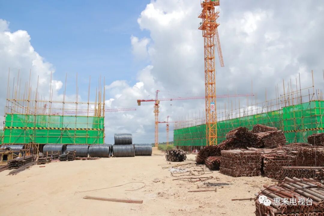 [项目负责人黄江飞:我们目前按七个组团划分了两大工区,其中一个是校园的东区,一个是校园的西区。其中二十二台塔吊已经有十四个完成安装 ,整个场地土石方平整已经完成。其中最快的西区宿舍楼已经完成三楼面的结构施工,预计这个月底到下个月初有一栋西区宿舍楼可以达到封顶的条件。另外,整个校园其他的像市政道路广场路我们已经完成了施工,整个工区按照之前政府预定给我们的时间节点就在今年年底全部结构封顶。明年六月底到七月初移交使用,我们也会抓住有利的天气赶工期,抓好防疫工作的同时,在确保安全和质量的前提上闻鸡起舞、日夜兼程、风雨无阻、如期把这个工程交付使用。]