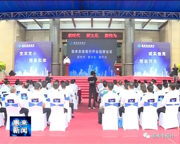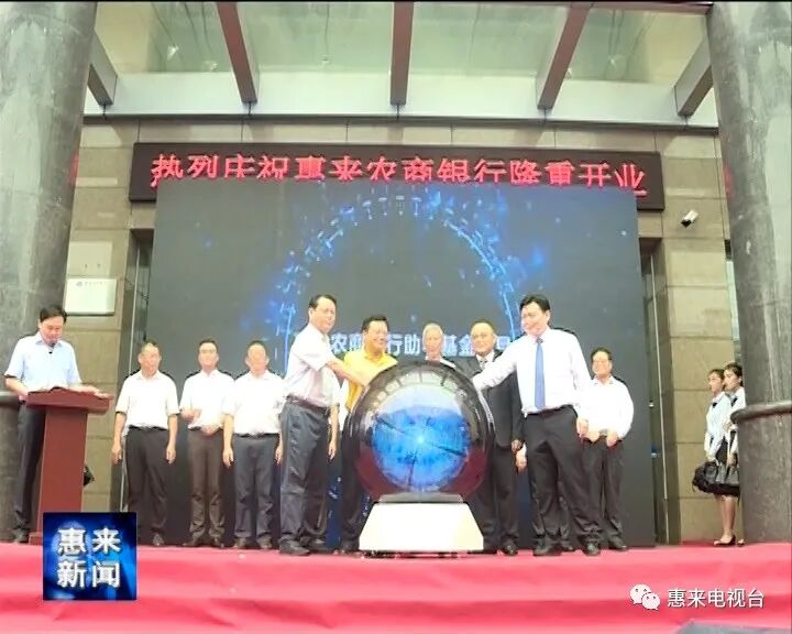 中国银保监会揭阳银保监分局副局长周建良宣读开业批复。惠来农商银行董事长曹永青致辞。县委书记蔡淡群、深圳农商银行行长袁捷、市政府副市长刘鹏先后作了讲话,指出惠来农商银行正式挂牌开业,是我县金融改革的一件喜事,标志着惠来农信事业从此跨入了新的历史阶段。