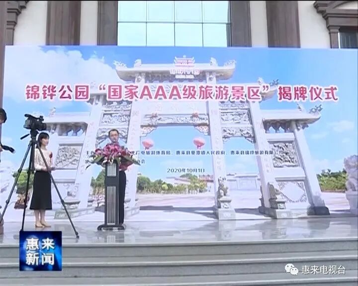 县政府党组成员、县政府办主任方思聪在揭牌仪式上讲话,方思聪说:近年来,县委县政府积极响应市委市政府关于发展全域旅游的号召,全面整合旅游资源,转变旅游发展方式,夯实旅游发展基础,提升景区景点服务功能,着力打造滨海休闲旅游、红色旅游、乡村旅游、宗教禅修养生旅游、民俗建筑景观旅游等特色旅游名片,全域旅游经济持续稳步发展。锦铧公园荣膺“国家AAA级旅游景区”,既是我县旅游行业的一件喜事,也是我县全域旅游发展过程中具有重要意义的一件大事。在今后的日子里,希望锦铧公园乘胜发力,不断规范景区管理,提升旅游文化品位,努力打造成为一个有文化底蕴的优质景区;县文化广电旅游体育等有关部门要积极主动作为,继续深挖区域旅游资源,打造特色旅游品牌。同时也恳请文化旅游业界的各位专家、朋友,多到惠来考察指导,多给我们提出宝贵的意见建议,共同为我县的文化旅游事业发展出谋划策,让惠来的旅游规划更趋合理、更加科学、更具品位,共同谋划惠来旅游文化事业发展的美好前景。