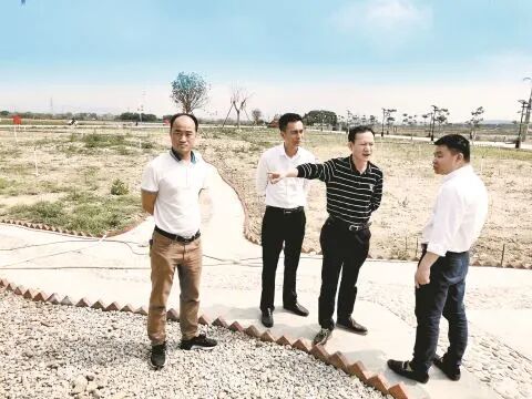 惠来县人大常委会副主任、隆江镇党委书记詹汉宏(右二)带队检查美丽乡村建设工程。