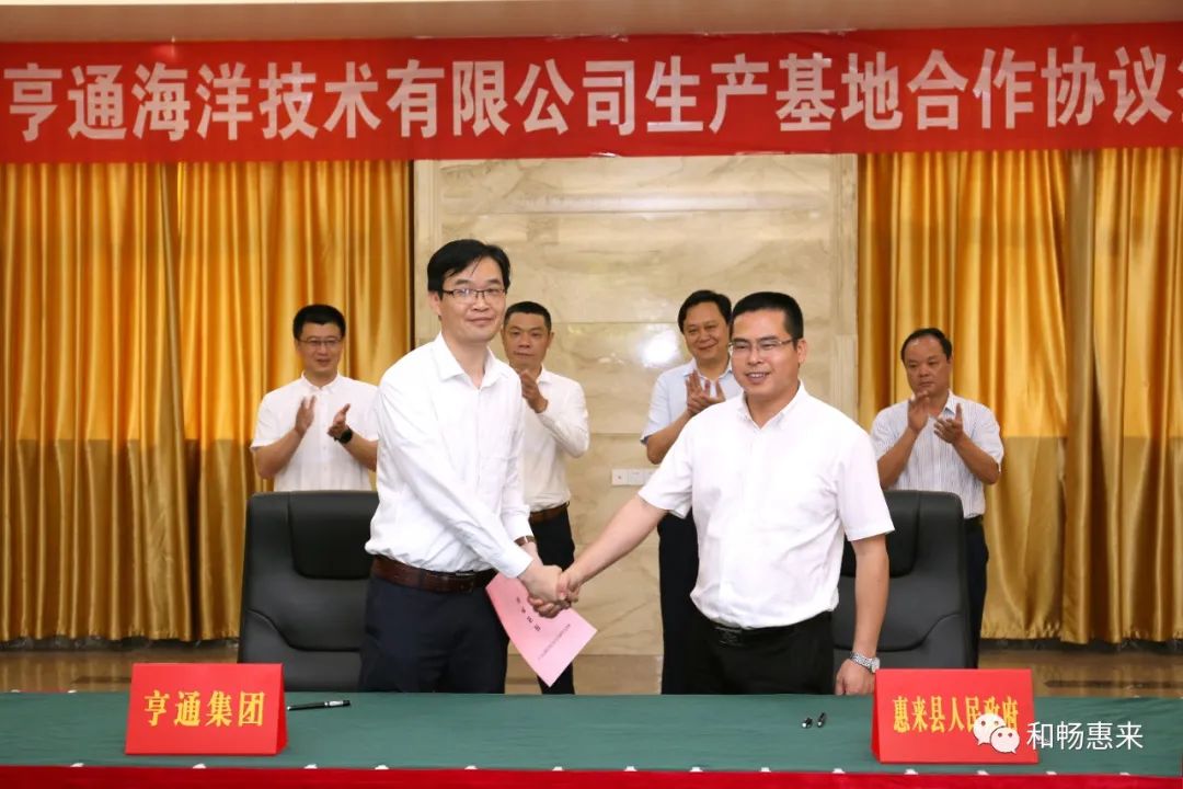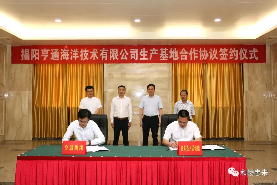 5月13日下午,我县在县委接待办举行揭阳亨通海洋技术有限公司生产基地合作协议签约仪式。县委副书记、代县长、大南海石化工业区管委会副主任肖辉生,亨通电力产业集团总裁李自为,国家电投集团前詹港电有限公司执行董事、总经理,揭阳前詹风电有限公司总经理,广东海上风电项目部主任王斌,县人大常委会主任、党组书记、县临港产业园建设领导小组副组长、筹建领导小组组长黄镇城,县政府副县长、临港产业园管委会主任杨小勇,县政府副县长提名人选、县自然资源局局长胡锡潮,江苏亨通高压海缆有限公司总经理钱志康,国家电投集团前詹港电有限公司、揭阳前詹风电有限公司副总经理刘明参加签约仪式。参加签约仪式的还有亨通集团相关领导以及县有关部门负责同志等。