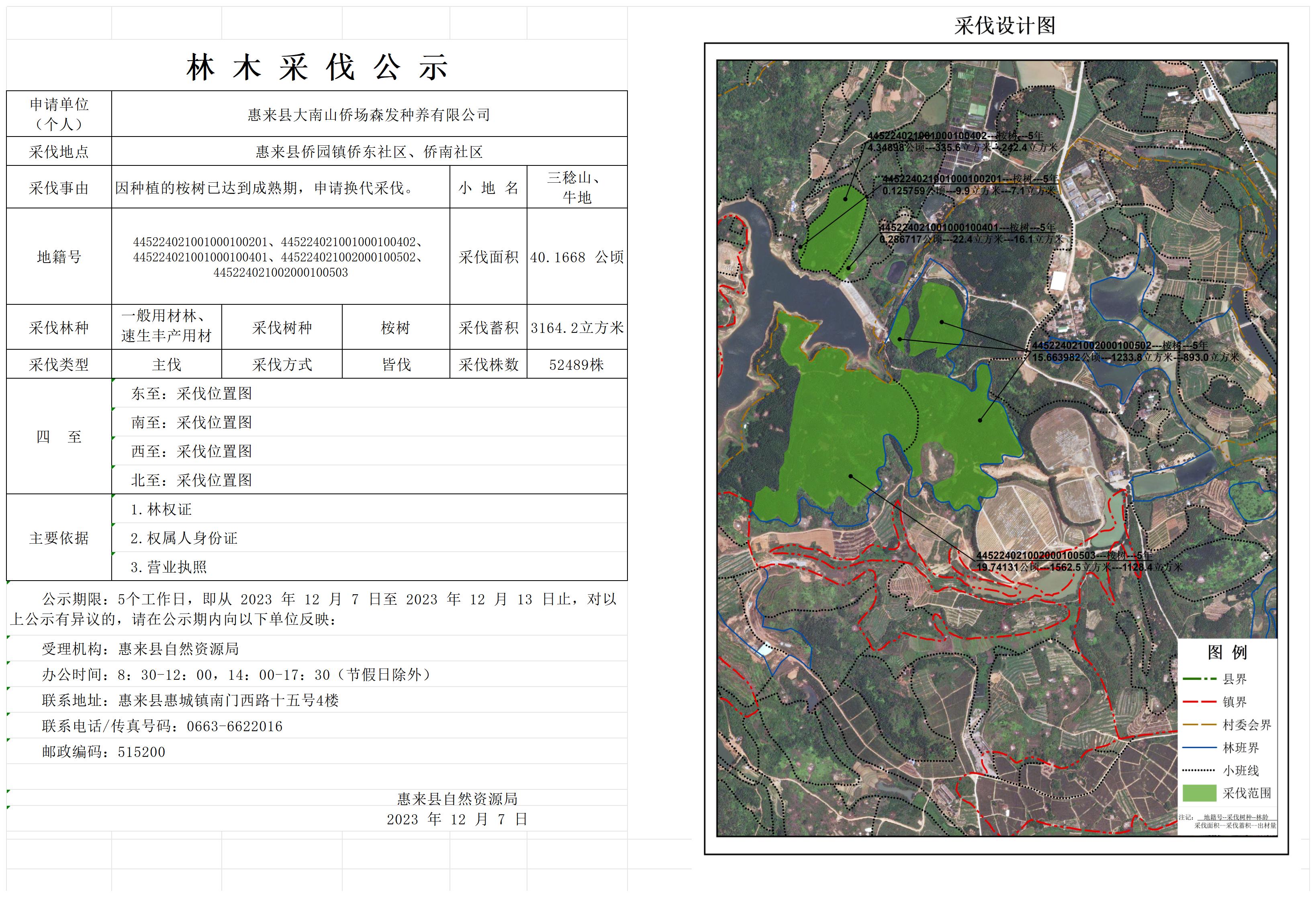 惠来县大南山侨场森发种养有限公司林木采伐公示