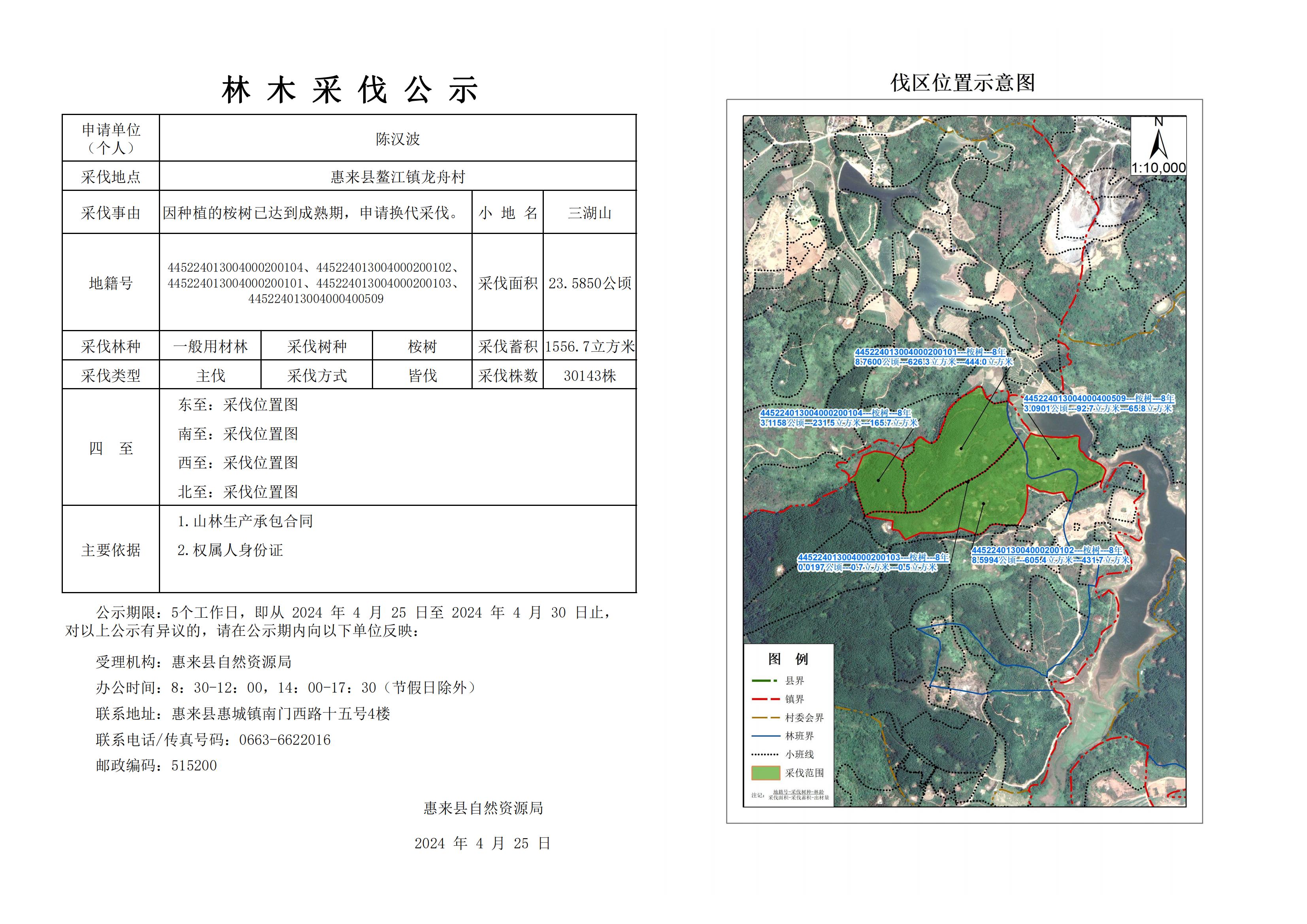 惠来县鳌江镇龙舟村林木采伐公示