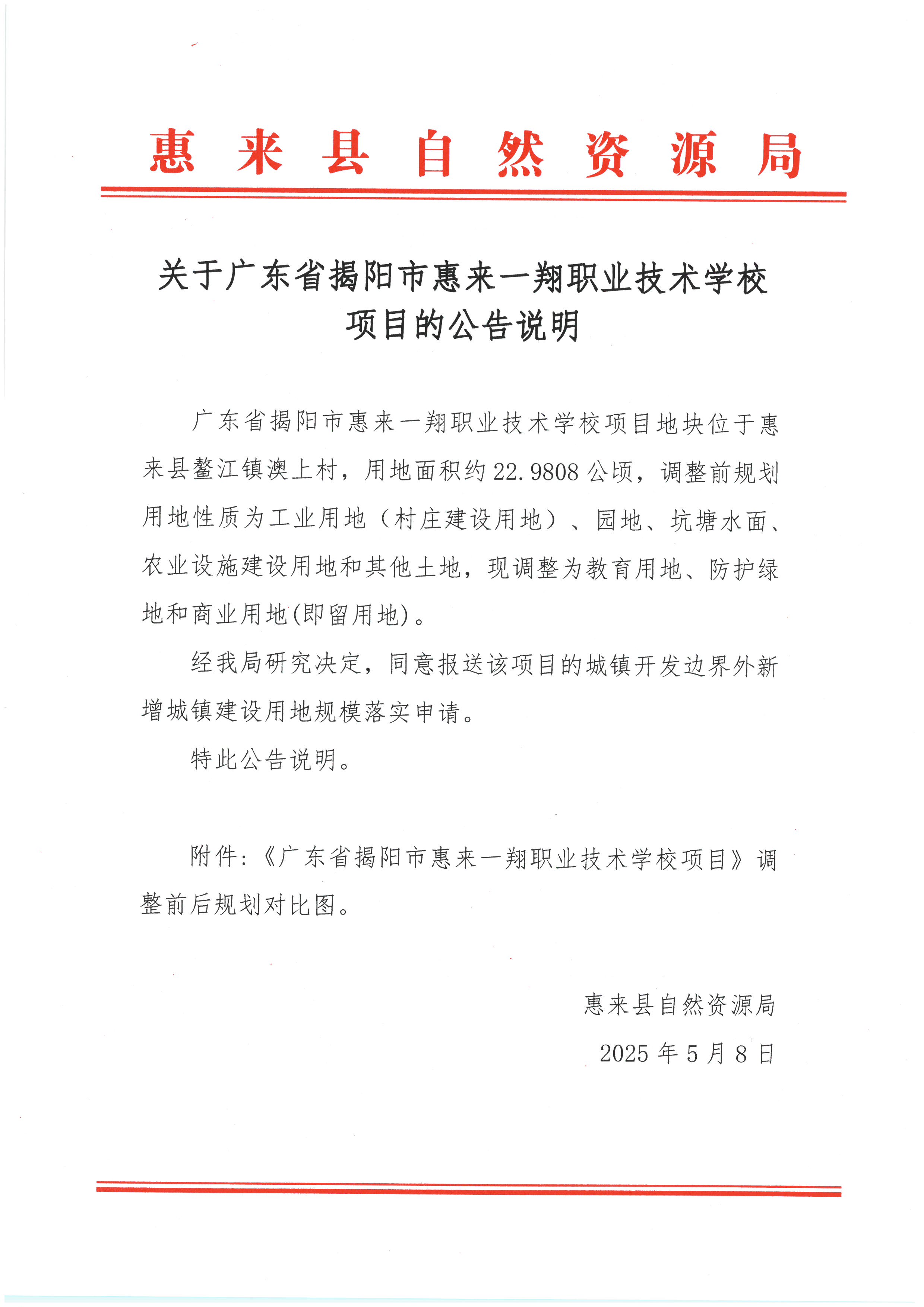 关于广东省揭阳市惠来一翔职业技术学校项目的公告说明