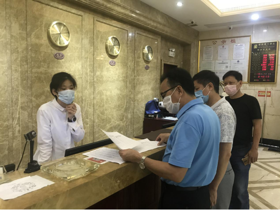 本次检查工作由县文广旅体局分管执法工作洪少龙同志带队,重点检查了我县酒店和宾馆在疫情期间是否有建立健全的疫情防控机制,是否有对入住人员开展排查登记、是否有进行体温检测和检验健康码。通过对我县区域内酒店和宾馆的检查,大部分酒店和宾馆都能按照广东省关于酒店、宾馆新冠肺炎防控工作指引等文件要求加强对酒店、宾馆的管理,落实防控措施。联合检查组深入到各酒店、宾馆加强排查,全面掌握各酒店、宾馆以及人员入住情况,为及早发现并稳妥处置风险隐患,巩固疫情防控成果打下良好基础。