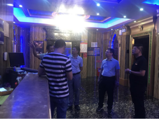 2020年9月3日,由文广旅体局分管执法工作洪少龙同志带队对辖区内文化市场经营单位进行检查,随机抽查了我县娱乐场所4家,重点检查各经营单位在疫情期间是否建立健全疫情防控机制和应急预案;经营活动证照是否齐全上墙;场所是否存在消防隐患以及开展扫黑除恶宣传工作的情况。通过检查,各场所都能按照省、市疫情防控工作有关文件精神,落实好各项制度,成立管理小组、制订疫情防控应急预案,加强场所环境卫生的消毒,张贴疫情防控工作指引,对人员以及有序开放期间进入人员进行体温检测和造册登记。及时更新消防设施,保持消防通道畅通无阻,杜绝安全隐患。