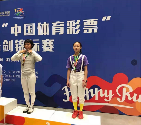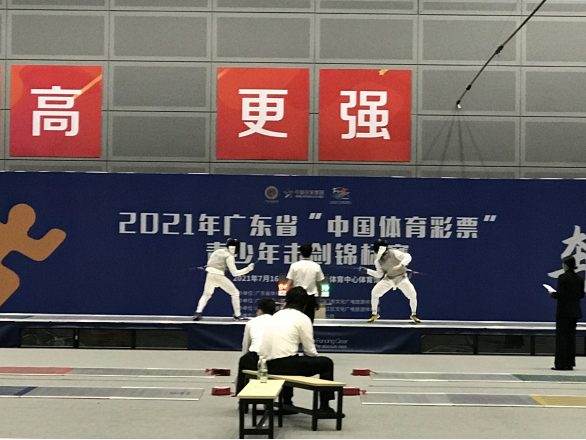 7月16日至26日,我县击剑代表队代表市参加在江门市举行的2021年广东省“中国体育彩票”青少年击剑锦标赛,取得男子乙组团体第三名, 女子丙组团体第三名的好成绩,击剑运动员吴泽涛获得男子花剑甲组第一名,击剑运动员李雨桐获得女子丙组个人第三名。