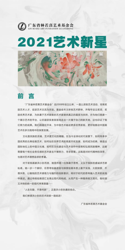 新锐画家洪小彤是广东惠来人,擅长中国花鸟画,荣获广东省林若熹艺术基金会2021年“艺术新星”。一直以来,洪小彤一步一个脚印,在思考绘画语言与探索绘画本质上勤于实践、大胆探索、不畏失败,以敏锐的艺术感悟力与强烈的创新意识,将对于时代的思考融入艺术的实践中进行表述,通过传统绘画语汇去表达现代的构成,从而产生一种既传统又现代,既和谐又冲突的现代审美意趣。