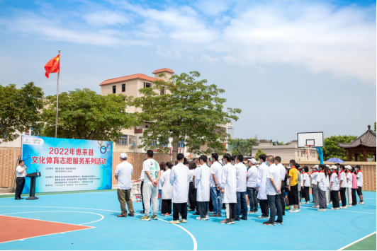 为推进实施健康中国和全民健身国家战略,构建更高水平的全民健身公共服务体系,丰富农村体育文化生活,助力乡村振兴发展,向党的二十大胜利召开献礼。5月20日下午,我局在周田镇径口村举办“公益体彩进乡村-2022年惠来县文化体育志愿服务系列活动”,广东工业大学揭阳校区党委、常务副书记邱伟青,县文化广电旅游体育局局长林轶伦,周田镇镇长蔡剑洪等参加了活动。