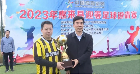 经过3天角逐,1月26日下午,“中国体育彩票”2023年惠来县迎春足球邀请赛在惠城镇西一飞合足球场举行决赛,县委常委、统战部部长蔡汉春、县文化广电旅游体育局局长林轶伦、县足球协会有关负责同志到现场观看比赛。