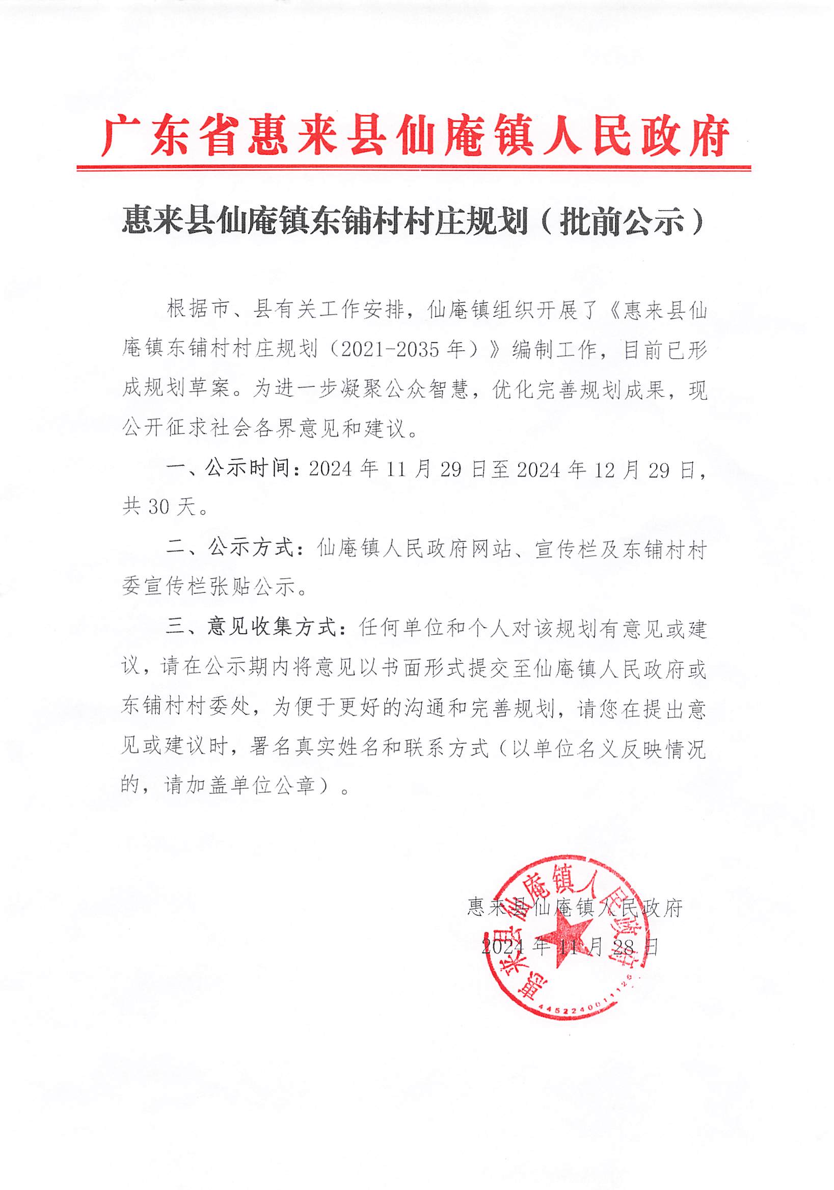 惠来县仙庵镇东铺村村庄规划(批前公示)