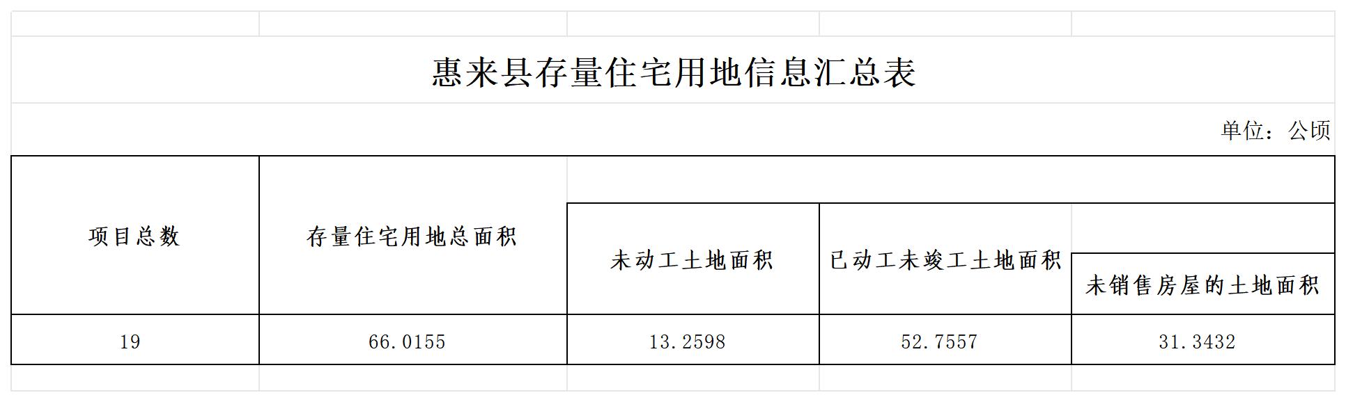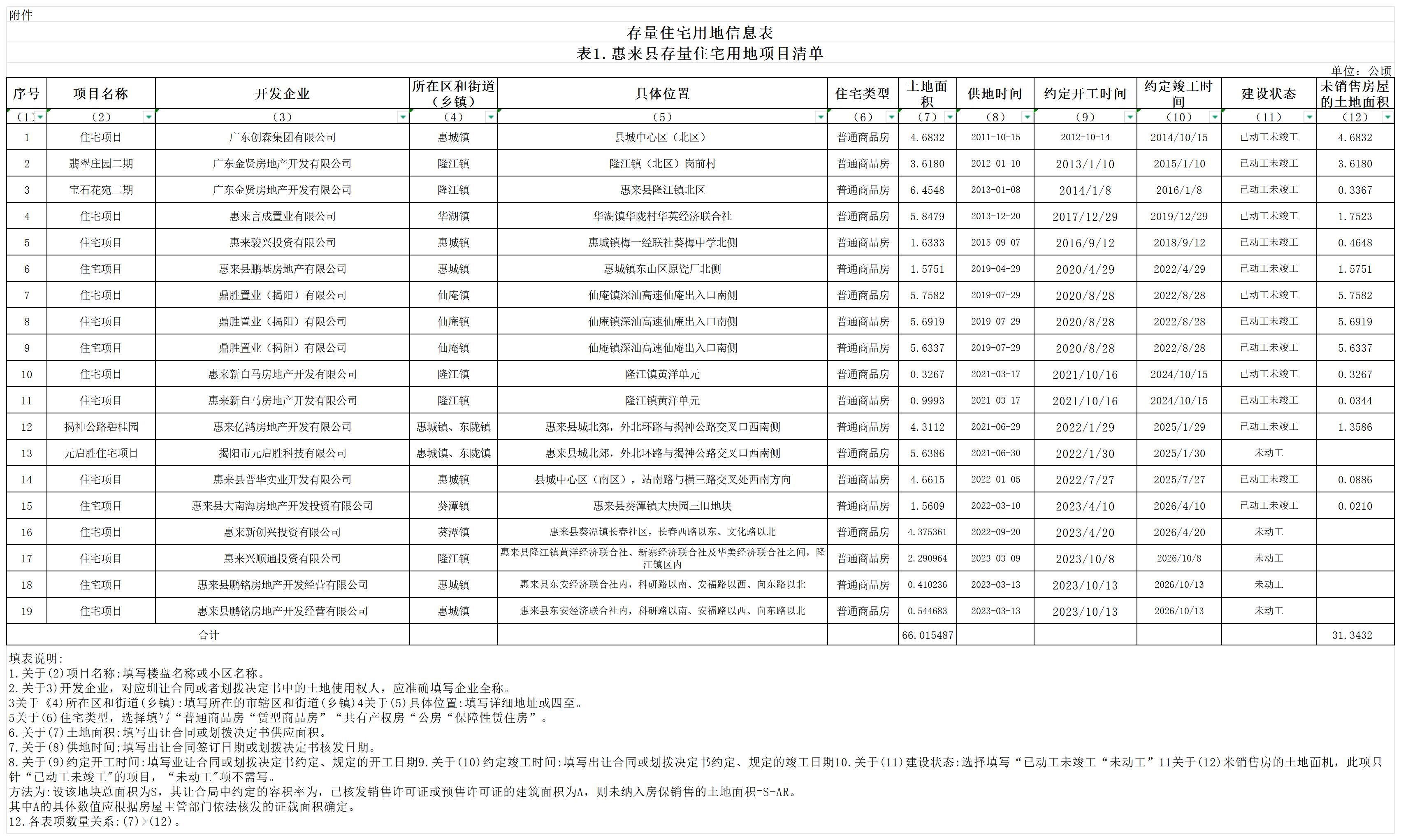 2025年惠来县存量住宅用地项目清单及信息汇总表(第三季度)
