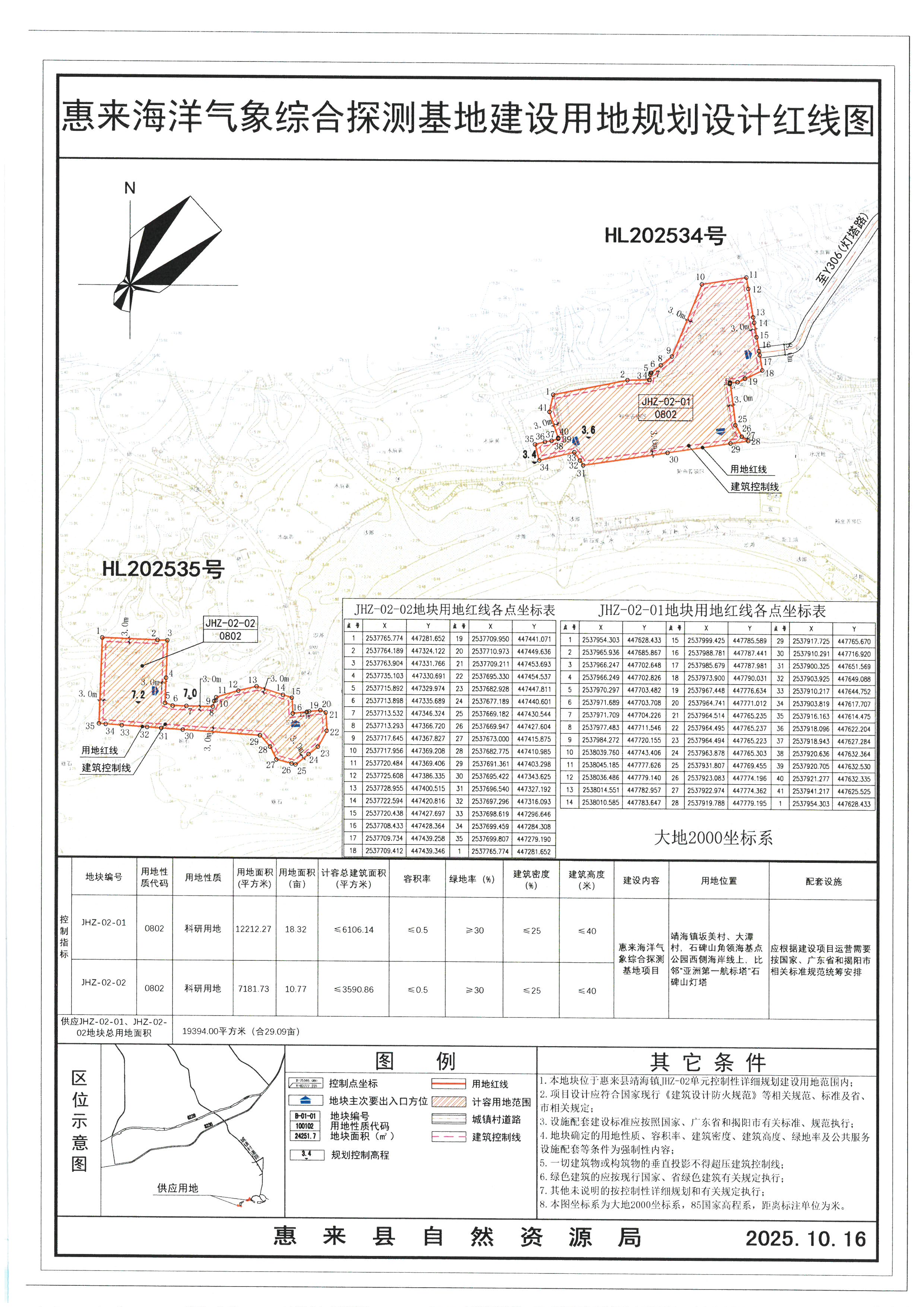 惠来海洋气象综合探测基地(HL202534号)建设用地规划许可事项批前公示