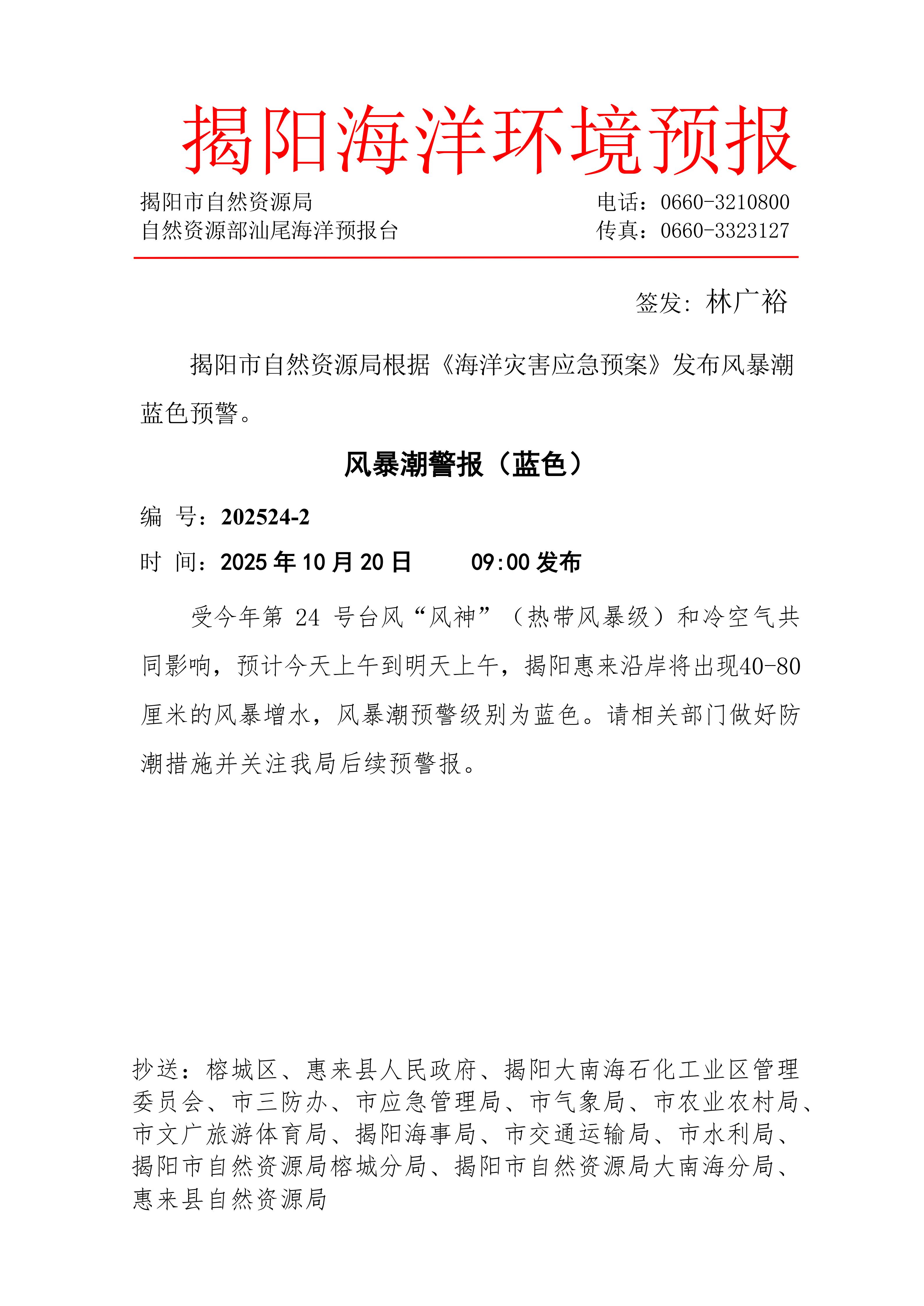 风暴潮警报(蓝色) 2025年10月20日 9:00