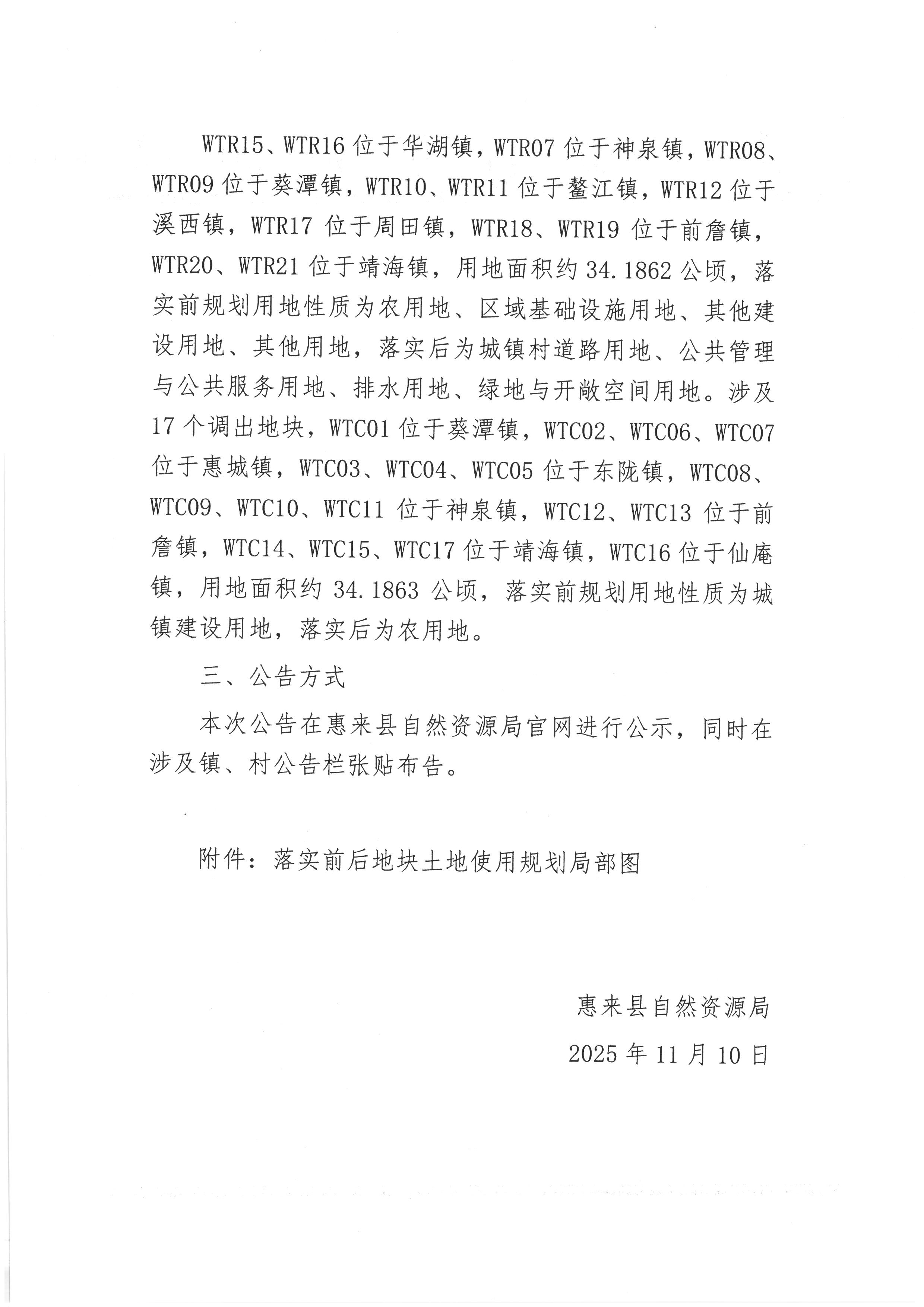 关于《揭阳市惠来县城镇建设用地规模落实方案(惠来县道路项目、惠来县公共基础设施项目)》成果的公告