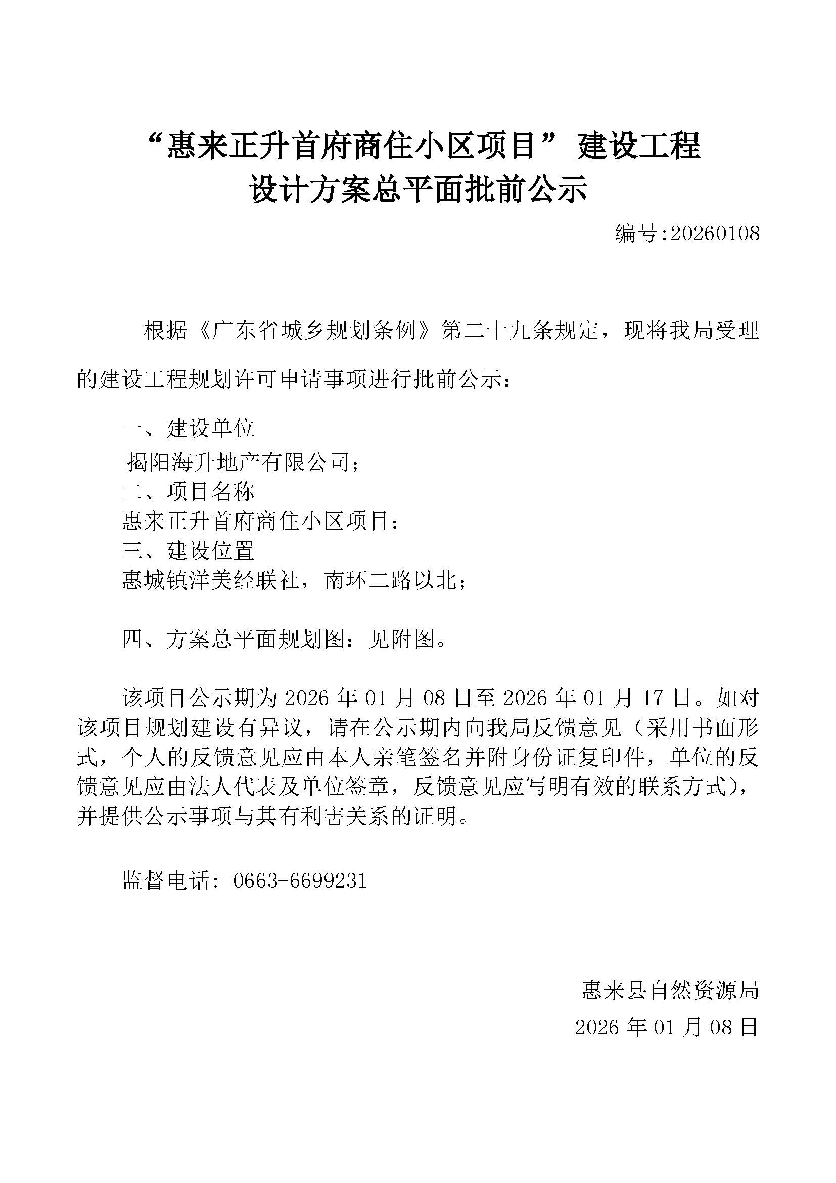 惠来正升首府商住小区项目建设工程设计方案总平面批前公示