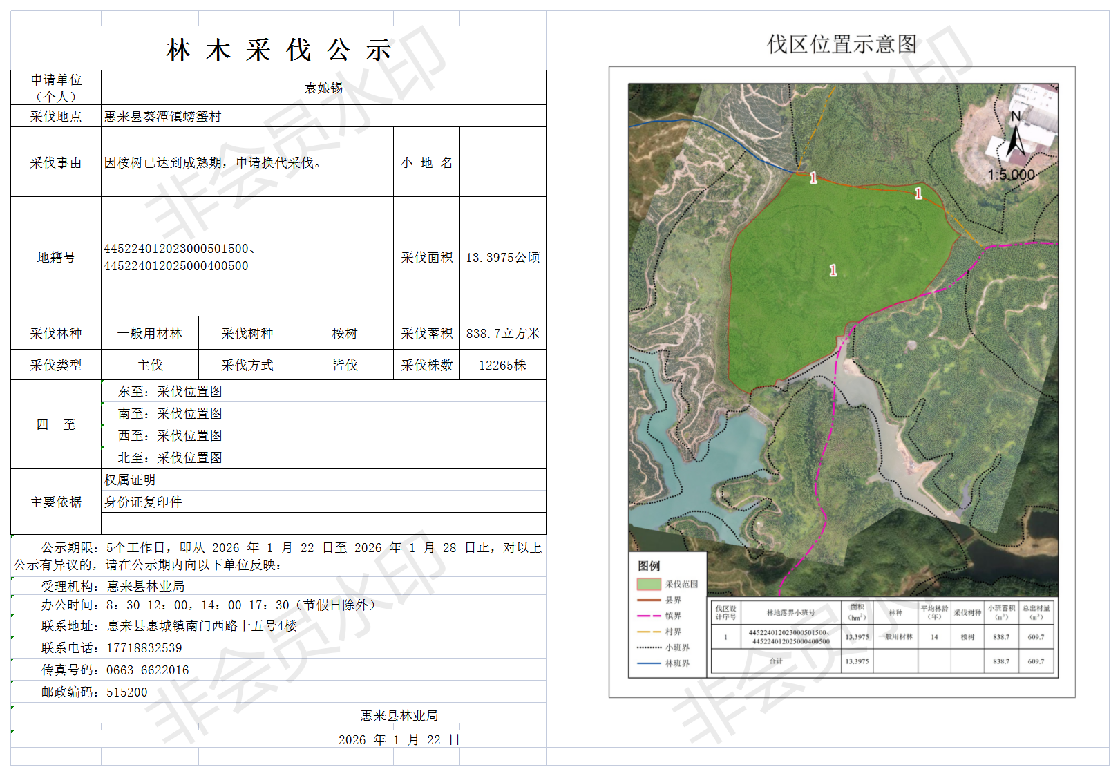 林木采伐公示 袁娘锡 惠来县葵潭镇螃蟹村