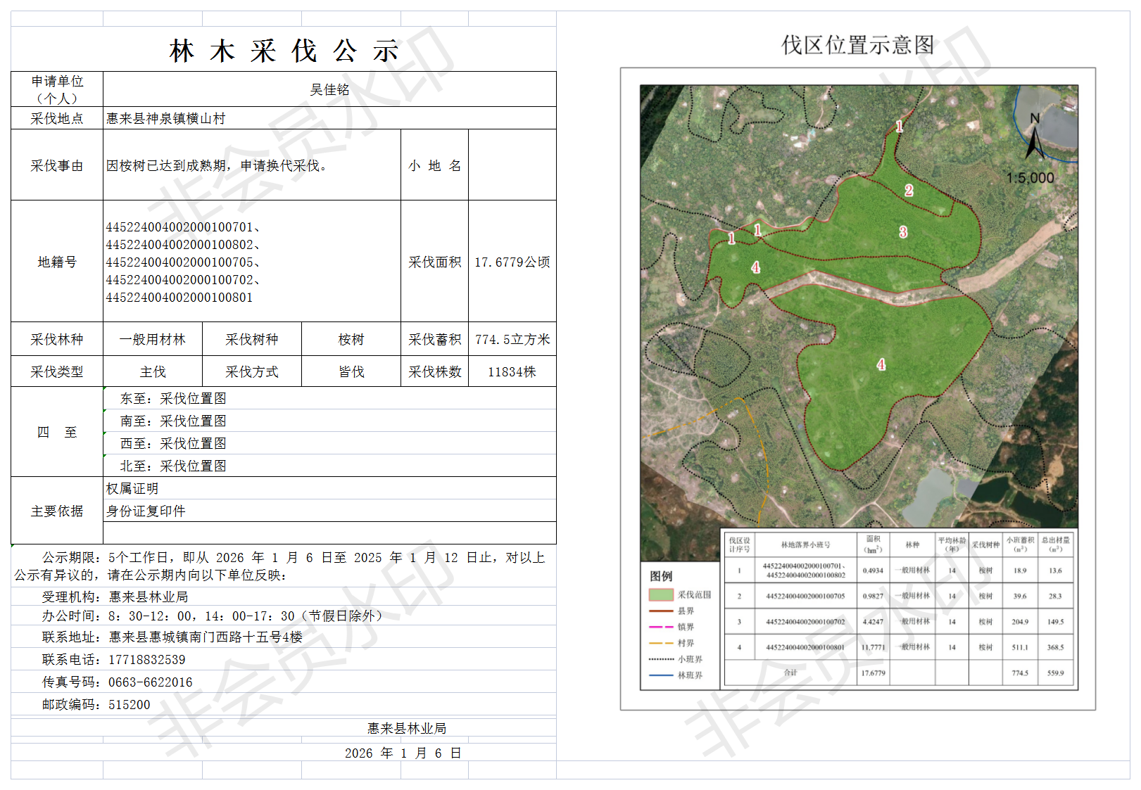 林木采伐公示 吴佳铭 惠来县神泉镇横山村