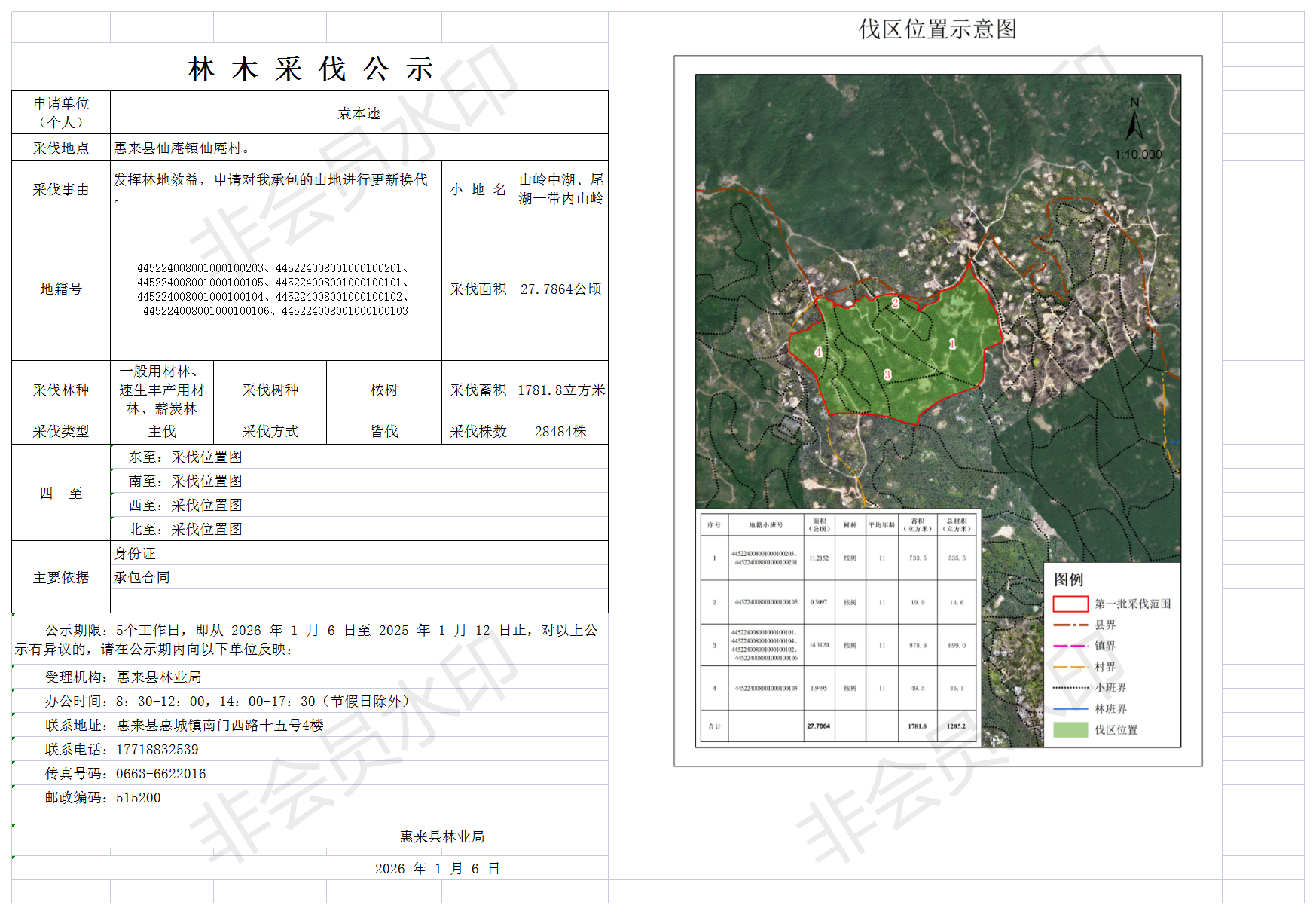 林木采伐公示 袁本逵 惠来县仙庵镇仙庵村