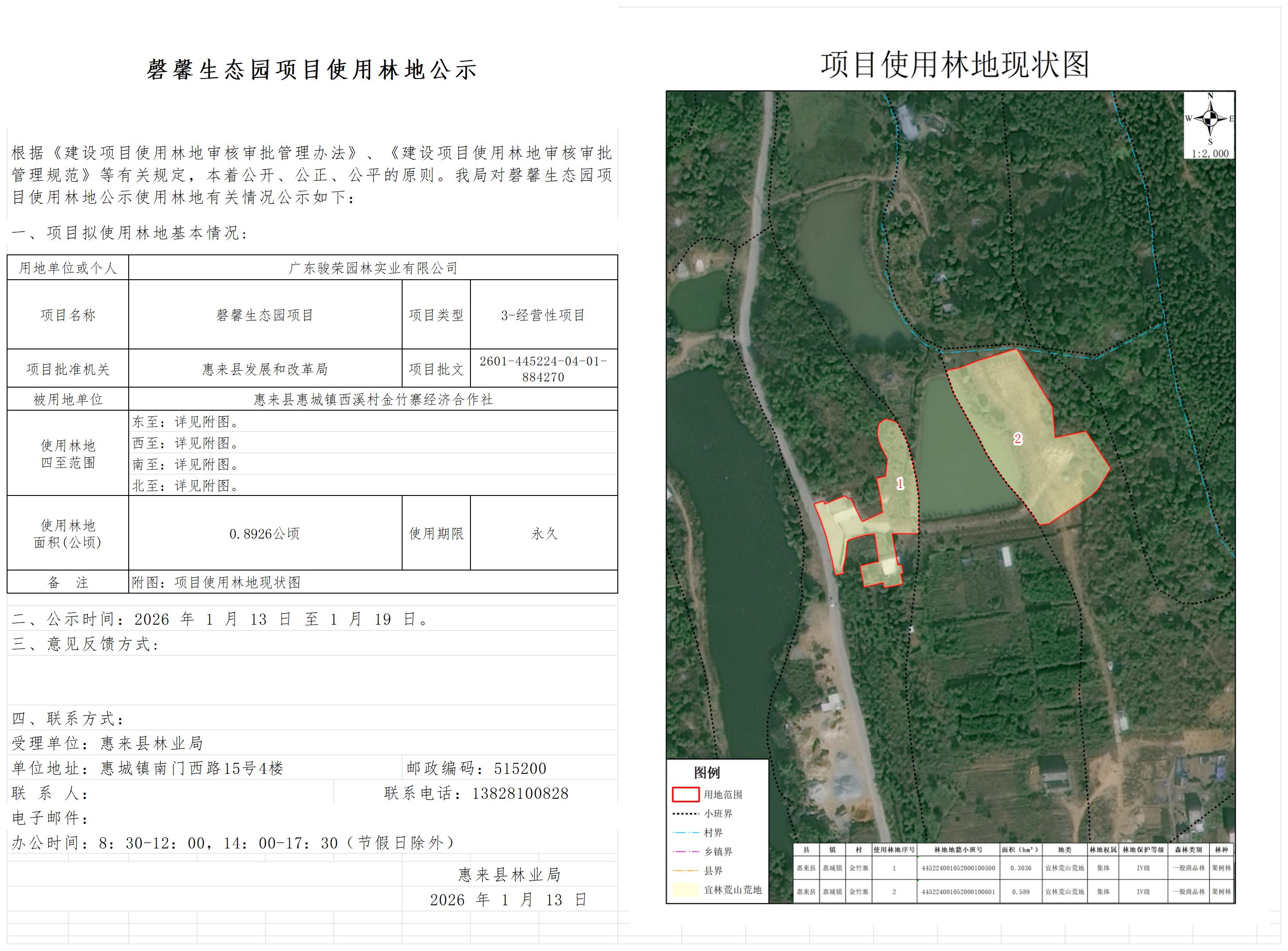 广东骏荣园林实业有限公司 馨馨生态园项目 惠来县发展和改革局