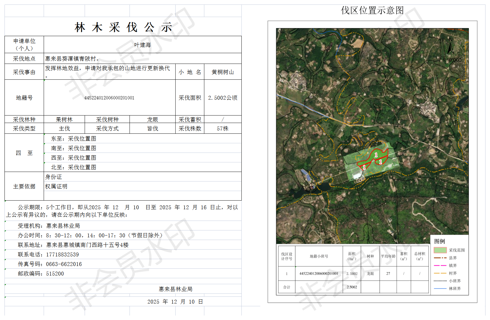 林木采伐公示 叶建海 惠来县葵潭镇青陂村
