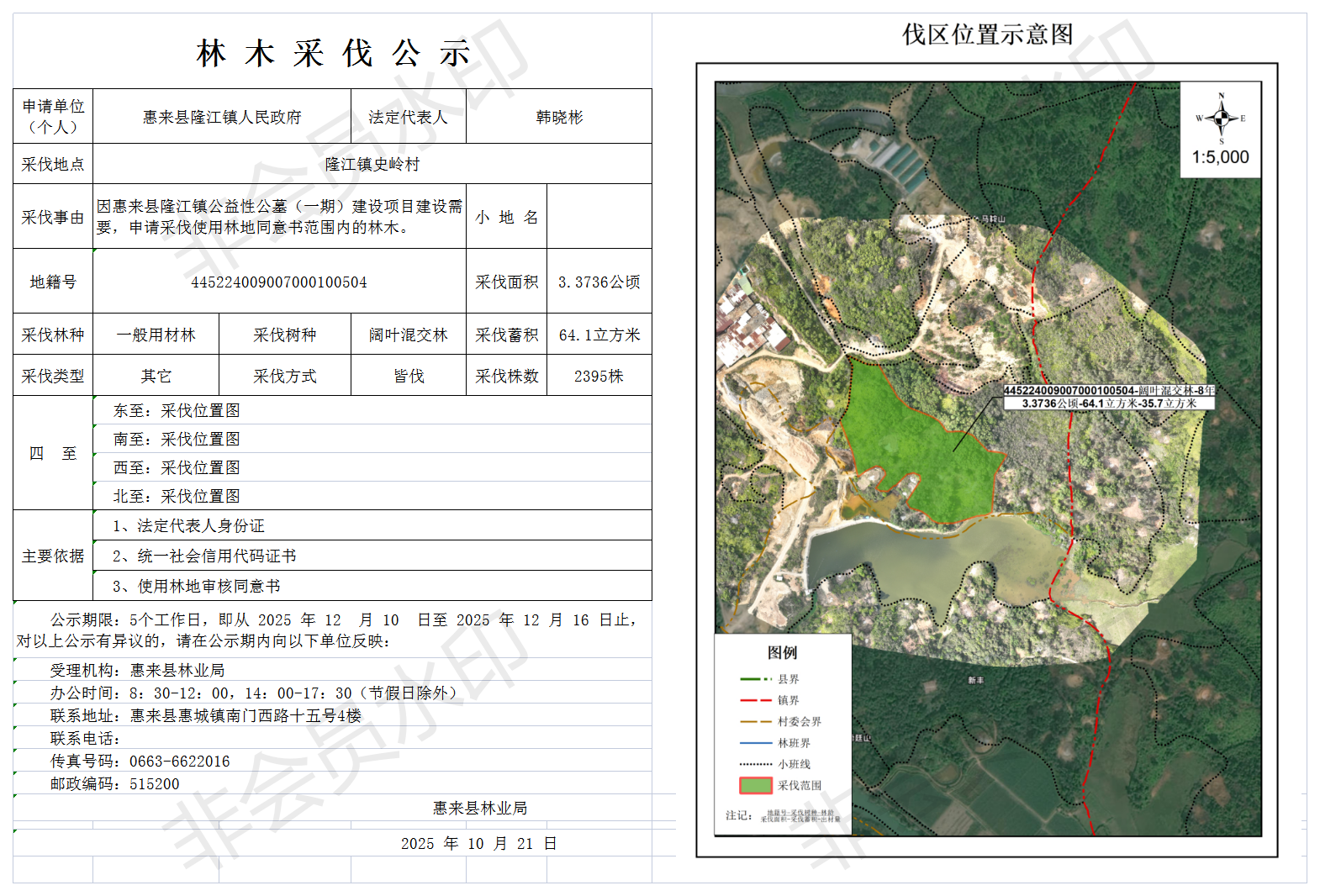 林木采伐公示 惠来县隆江镇人民政府 韩晓彬 隆江镇史岭村