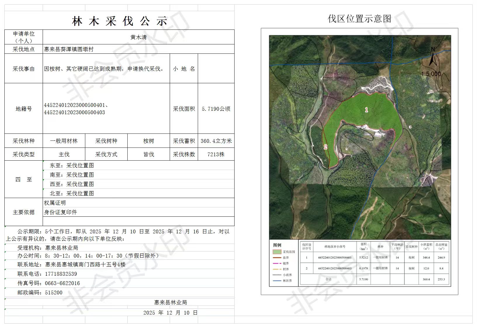 林木采伐公示 黄木清 惠来县葵潭镇圆墩村