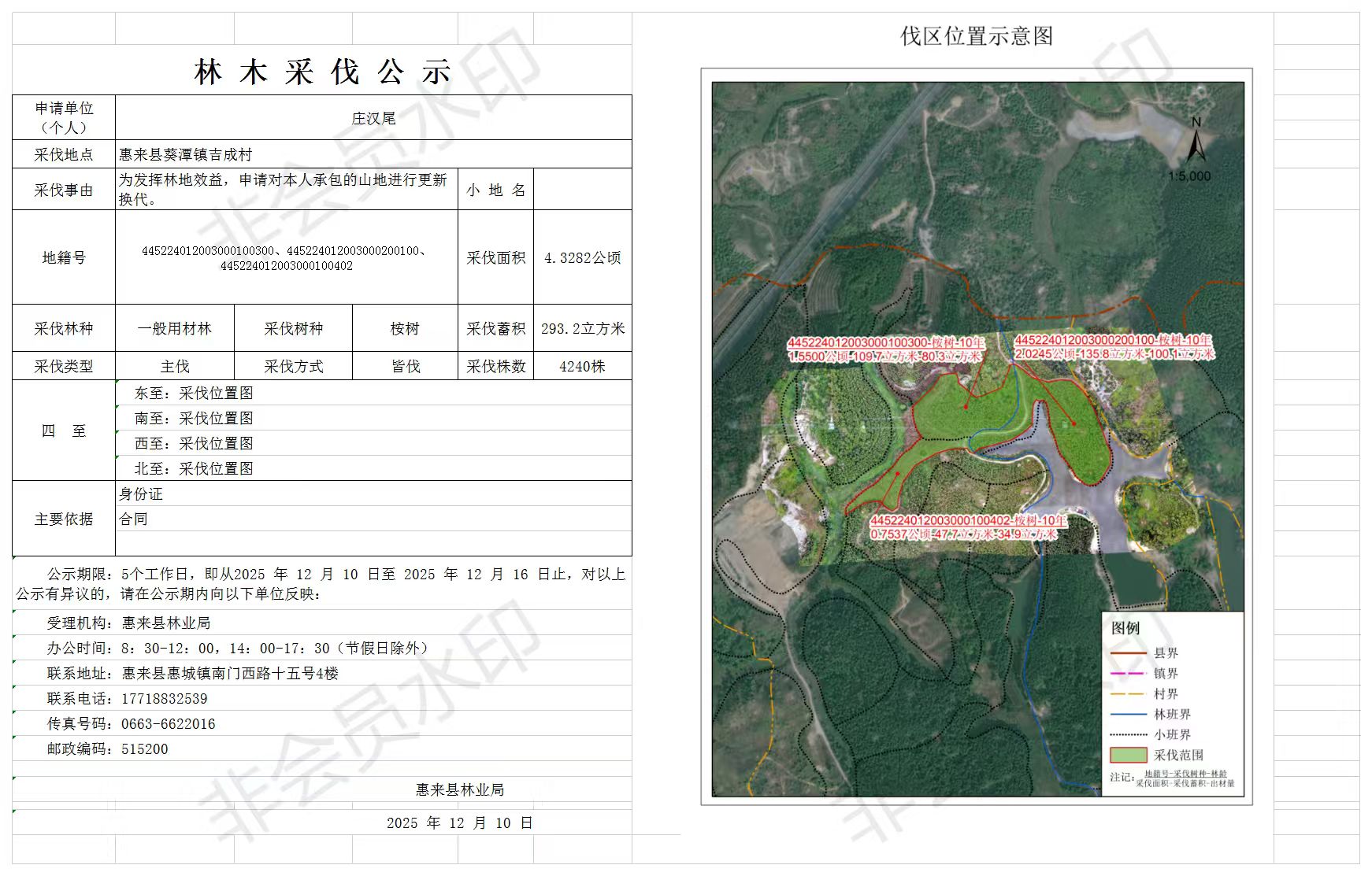 林木采伐公示 庄汉尾 惠来县葵潭镇吉成村