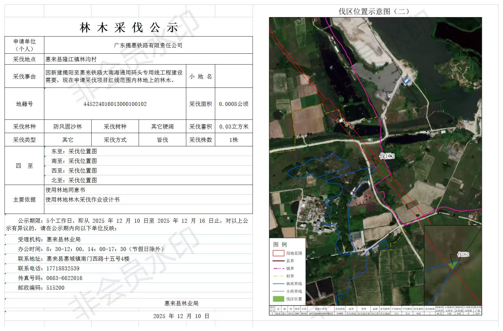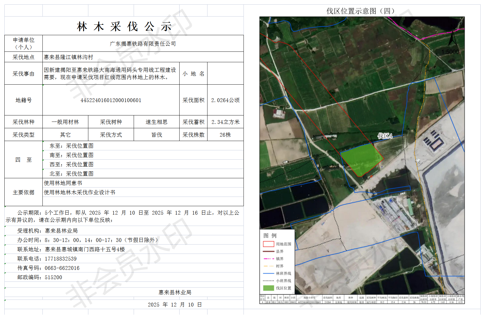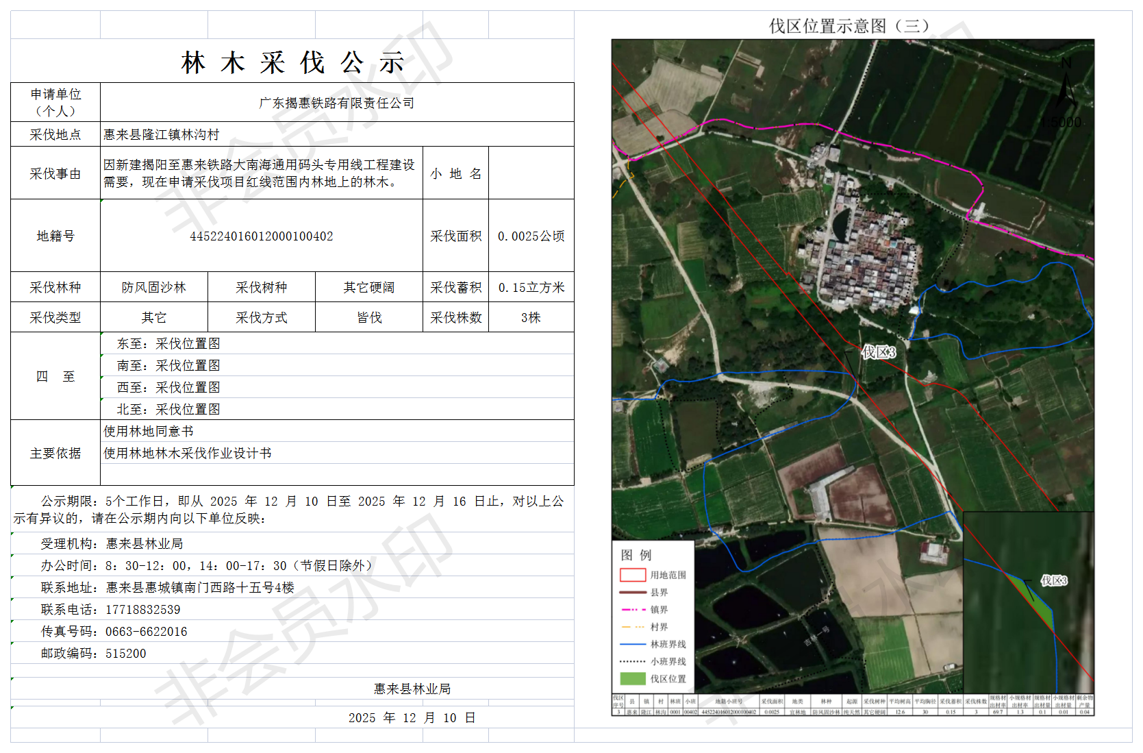 林木采伐公示 广东揭惠铁路有限责任公司 惠来县隆江镇林沟村