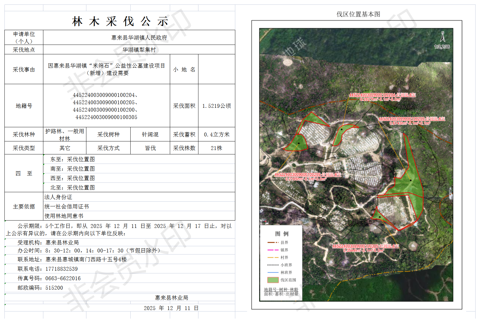 林木采伐公示 惠来县华湖镇人民政府 华湖镇犁集村
