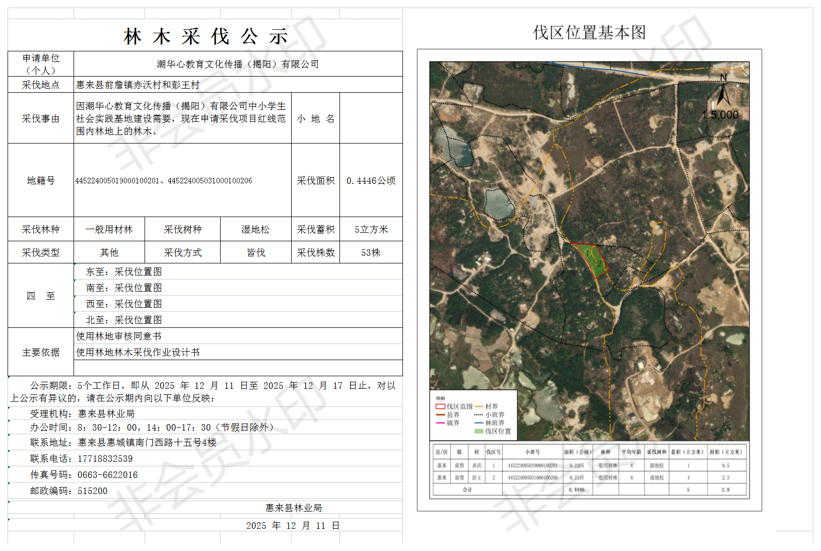 林木采伐公示 潮华心教育文化传播(揭阳)有限公司 惠来县前詹镇赤沃村和...