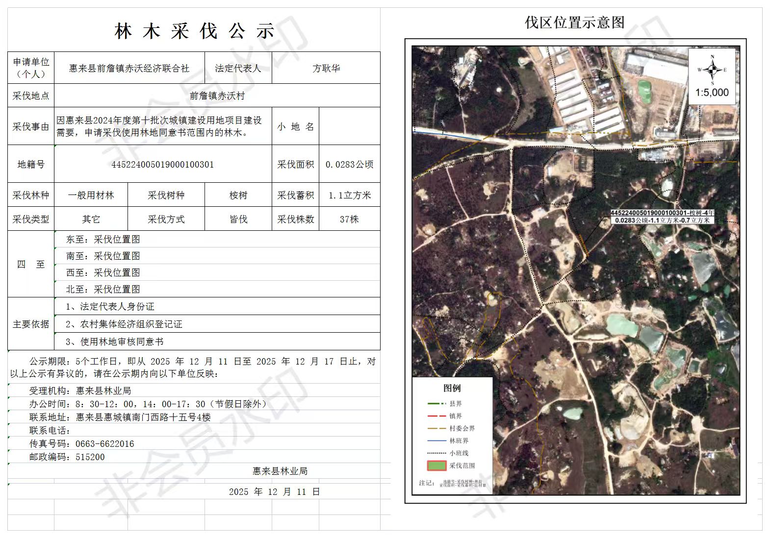 林木采伐公示 惠来县前詹镇赤沃经济联合社 方耿华 前詹镇赤沃村