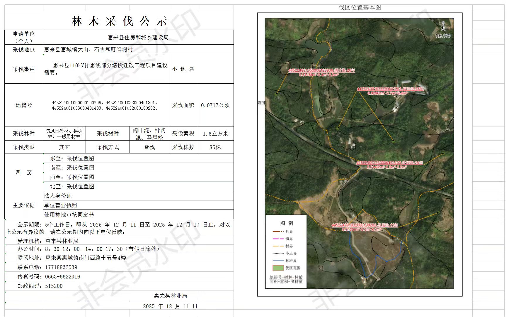 林木采伐公示 惠来县住房和城乡建设局 惠来县惠城镇大山、石古和叮哞树村