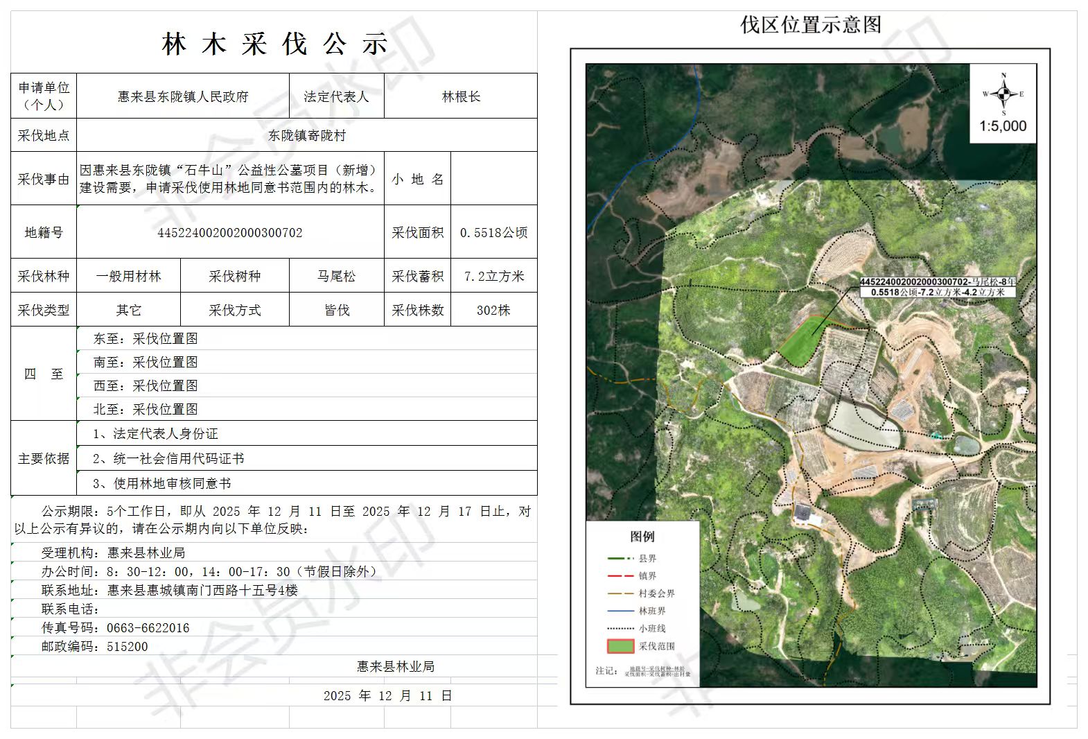 林木采伐公示 惠来县东陇镇人民政府 林根长 东陇镇寄陇村