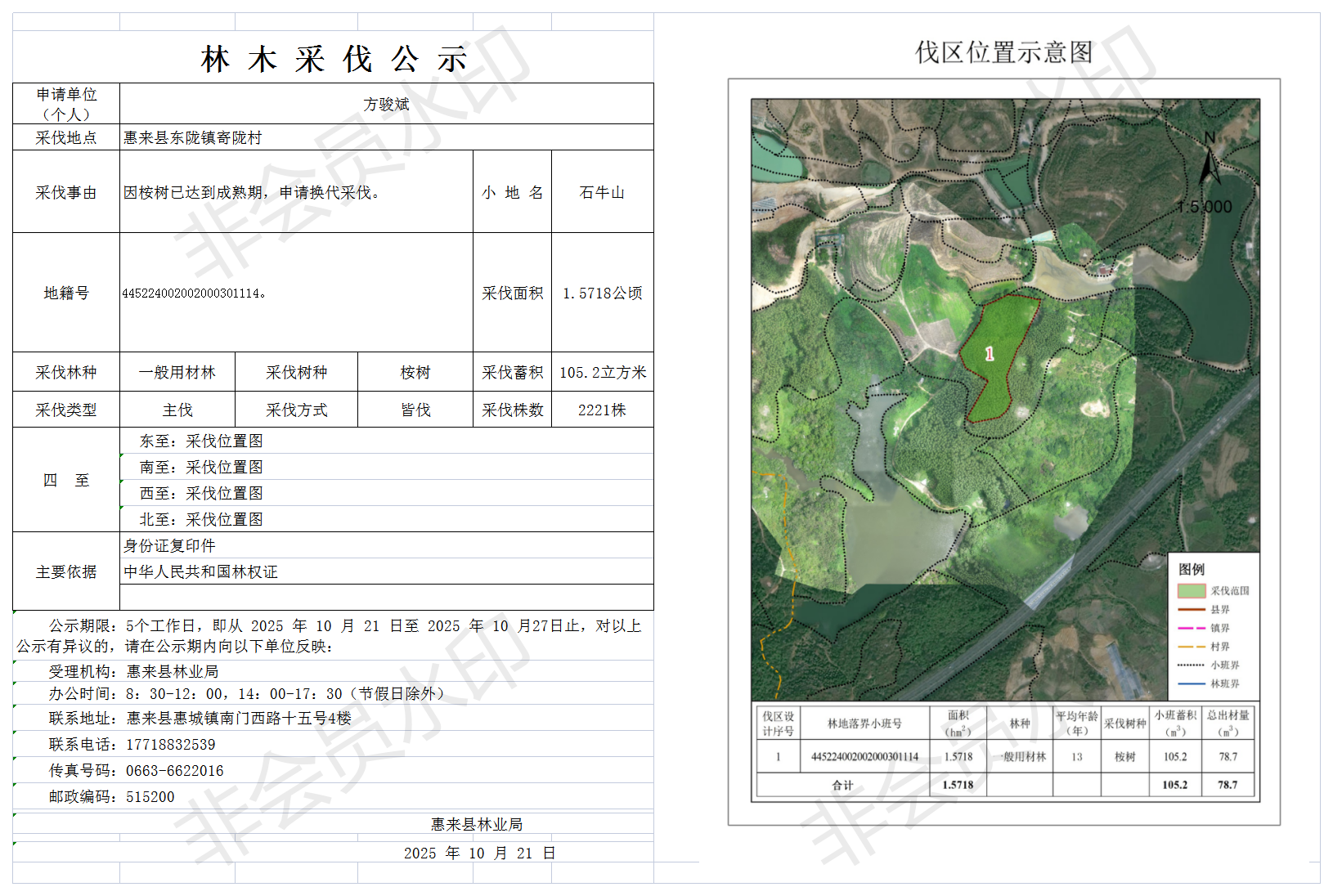 林木采伐公示 方骏斌 惠来县东陇镇寄陇村