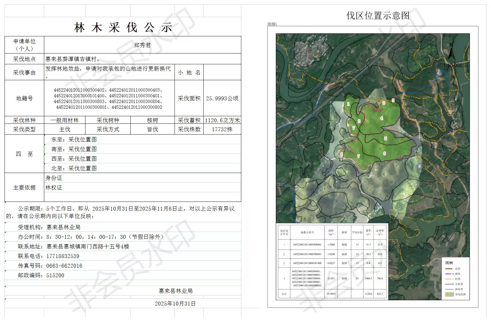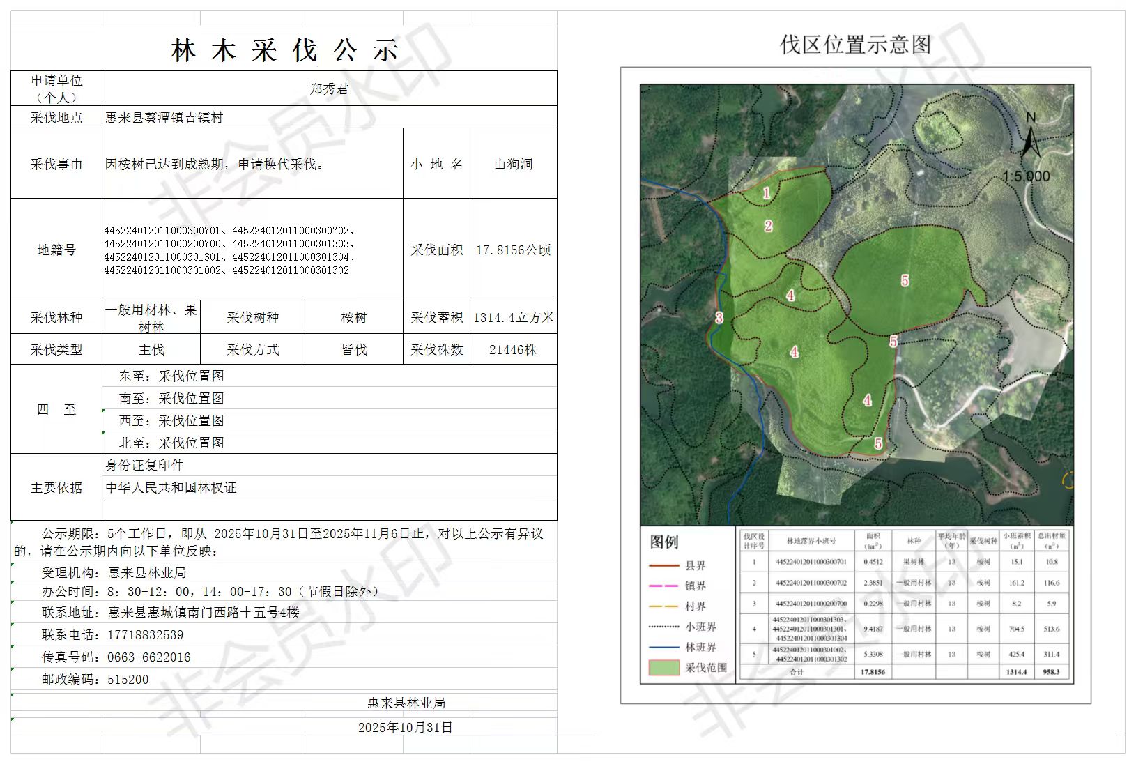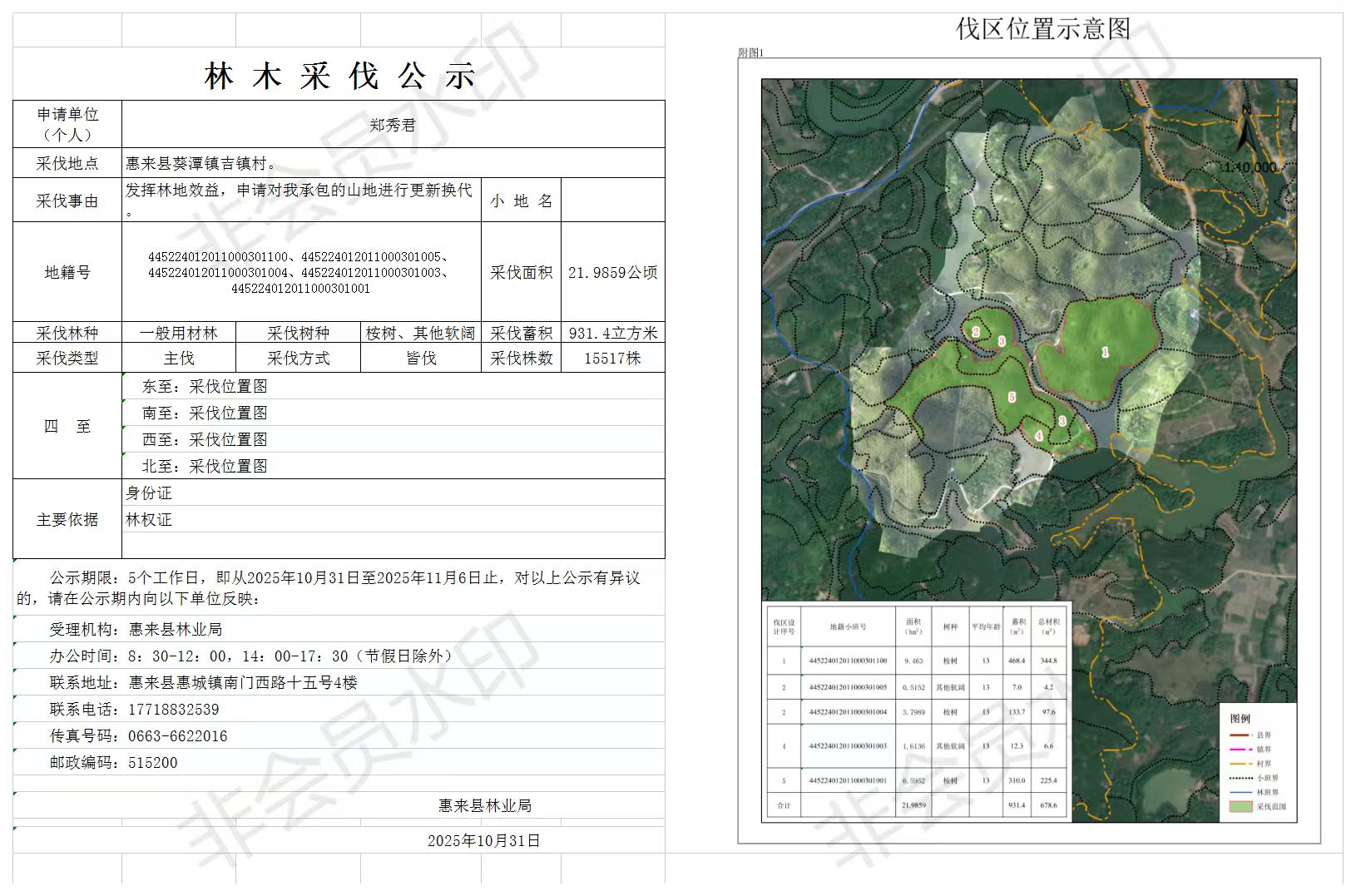 林木采伐公示 郑秀君 惠来县葵潭镇吉镇村