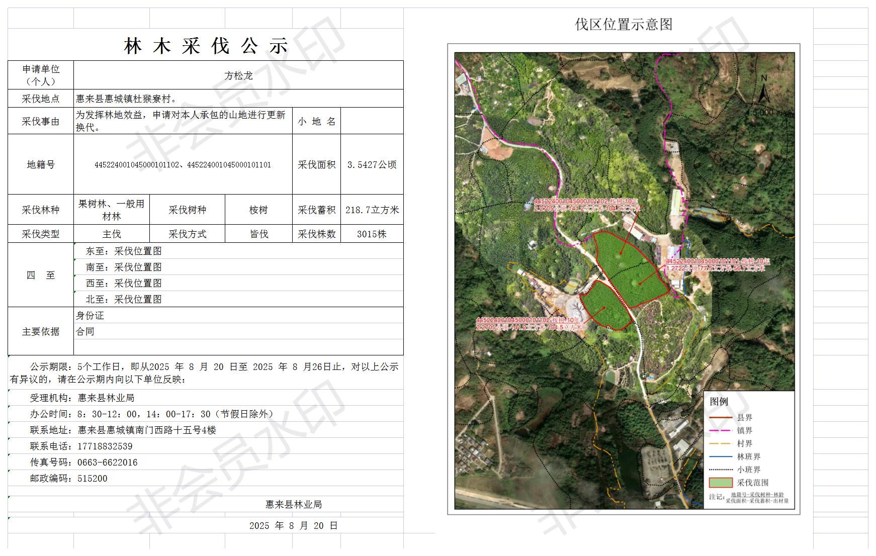 采伐公示 赵丽霞 惠来县侨园镇陂乌村