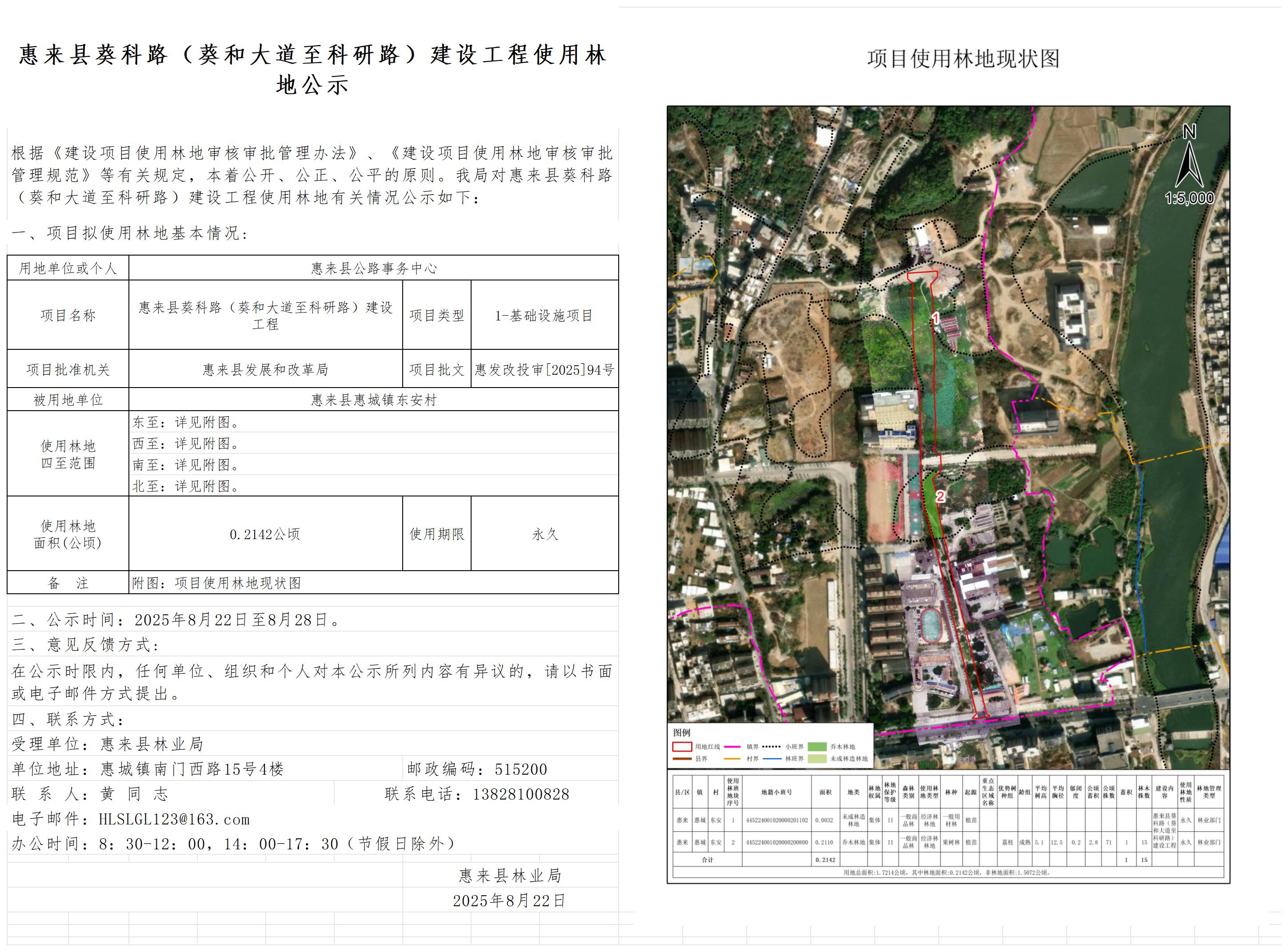 惠来县葵科路(葵和大道至科研路)建设工程使用林地公示 惠来县公路事务中...