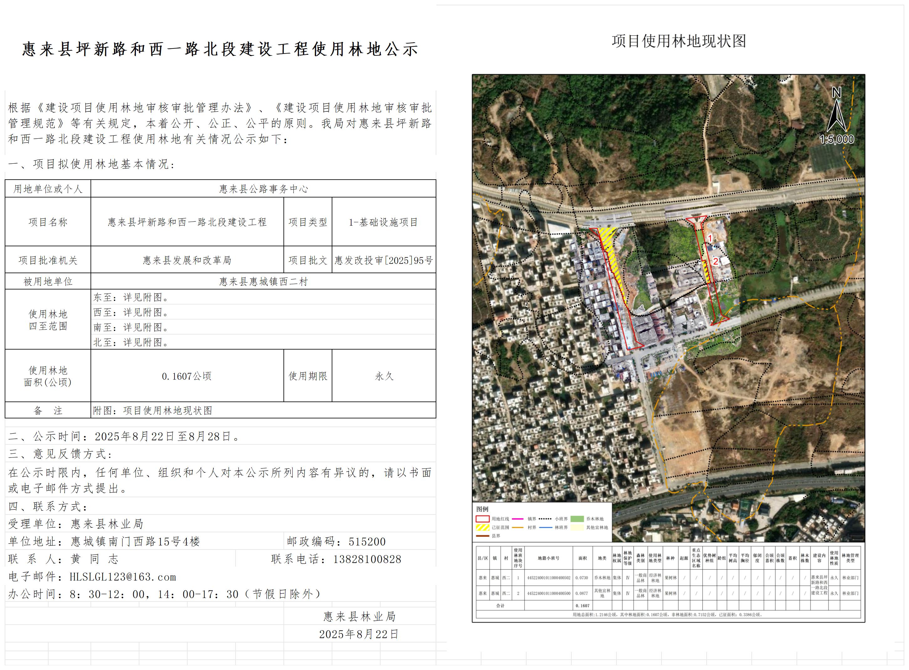 惠来县坪新路和西一路北段建设工程使用林地公示 惠来县公路事务中心