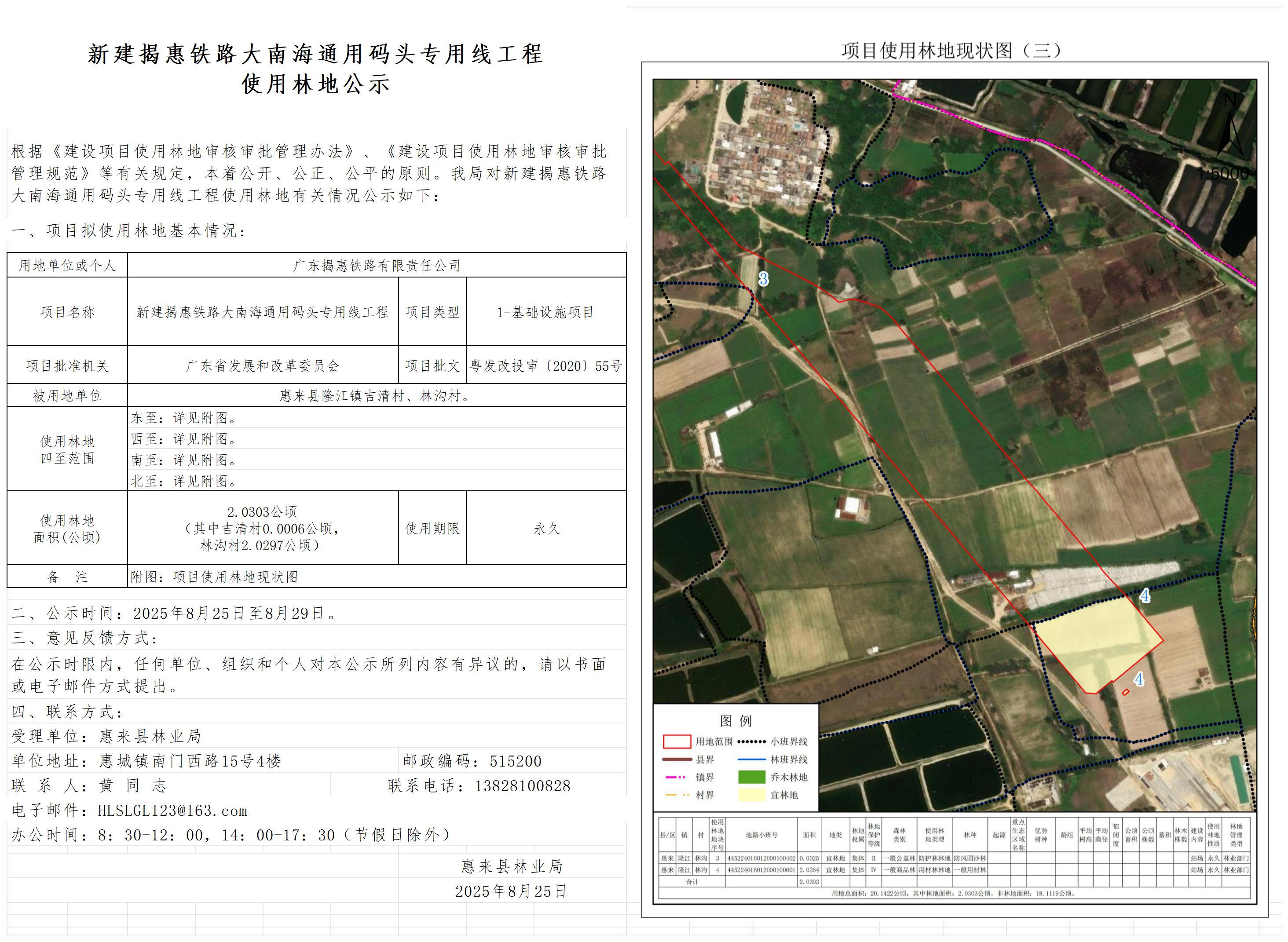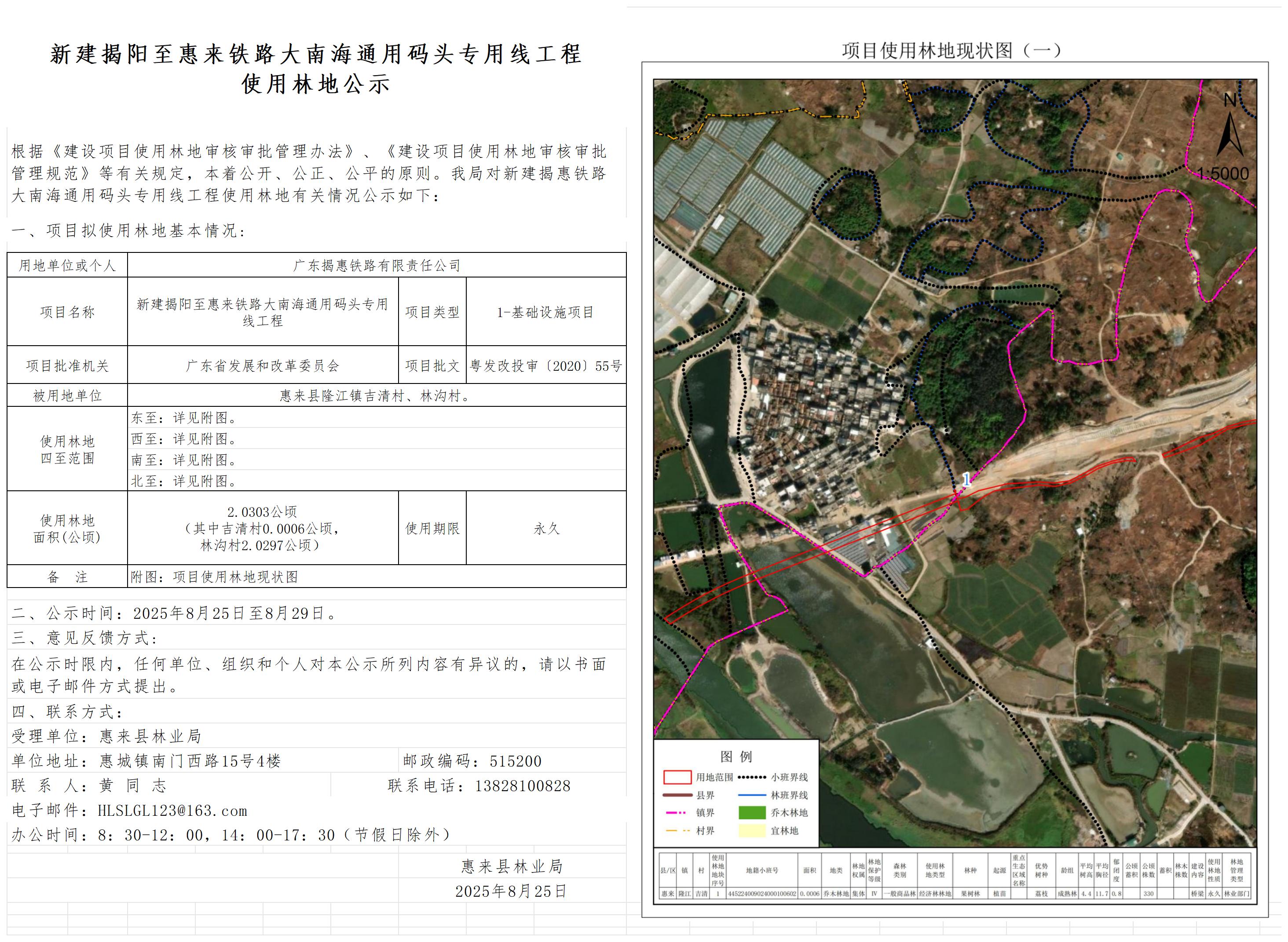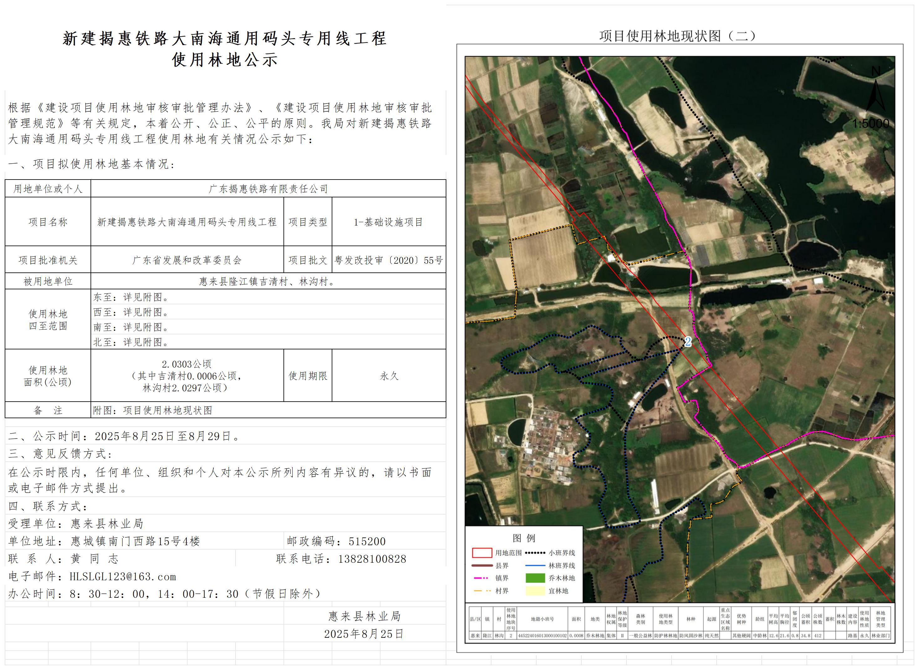 新建揭惠铁路大南海通用码头专用线工程使用林地公示2 广东揭惠铁路有限...